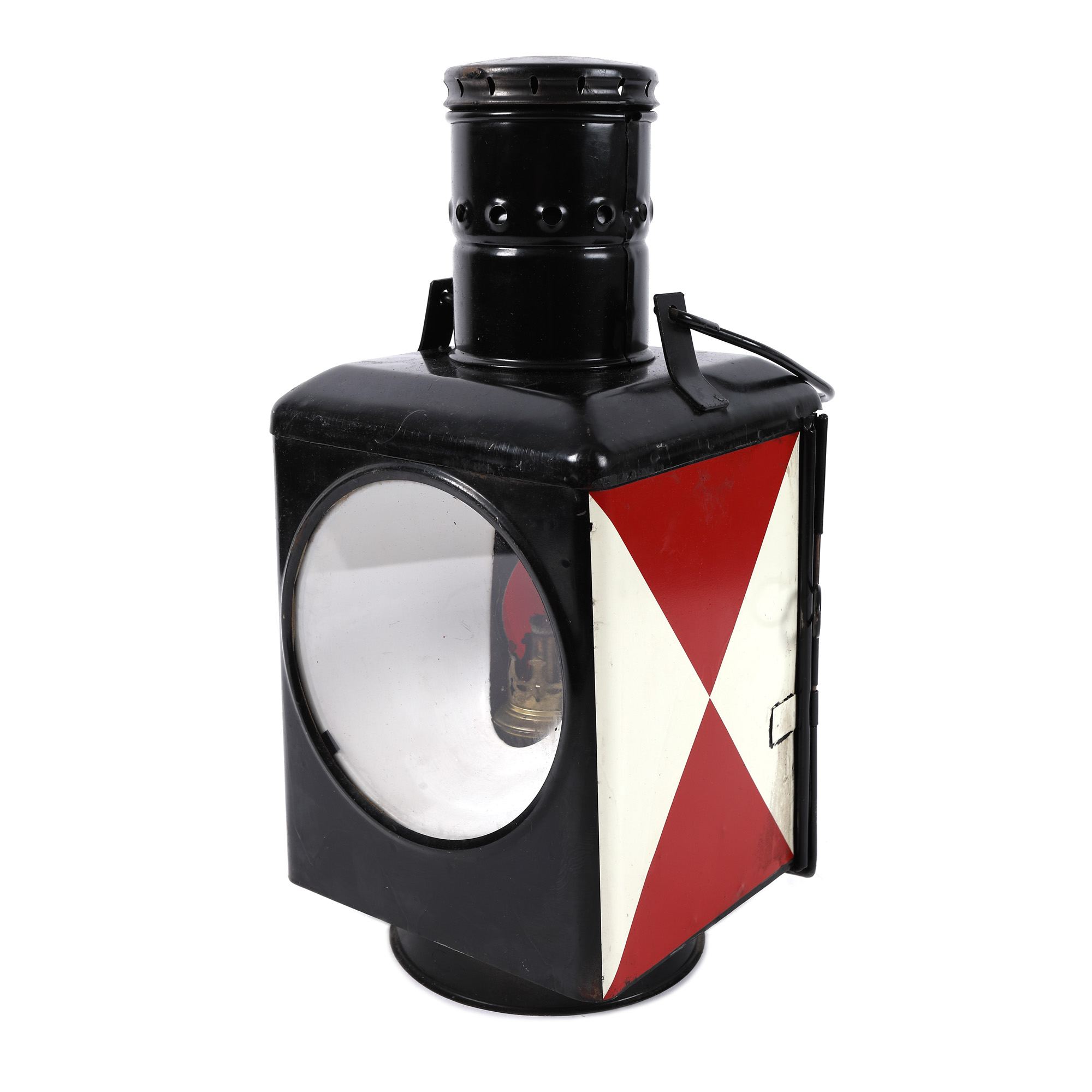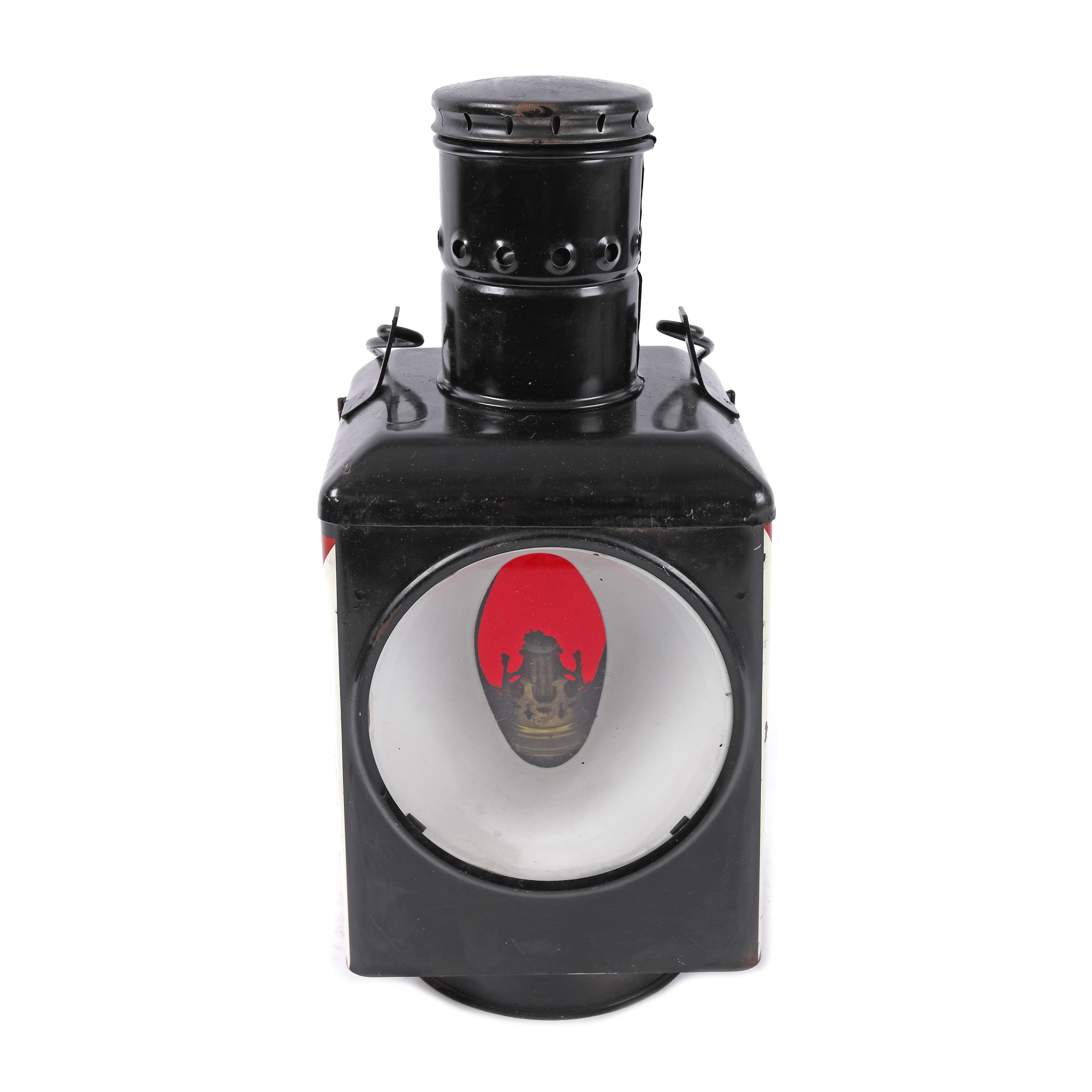 52. Lampă C.F.R de cap de linie, cu lumină bidirecțională alb-roșu, anii 1960