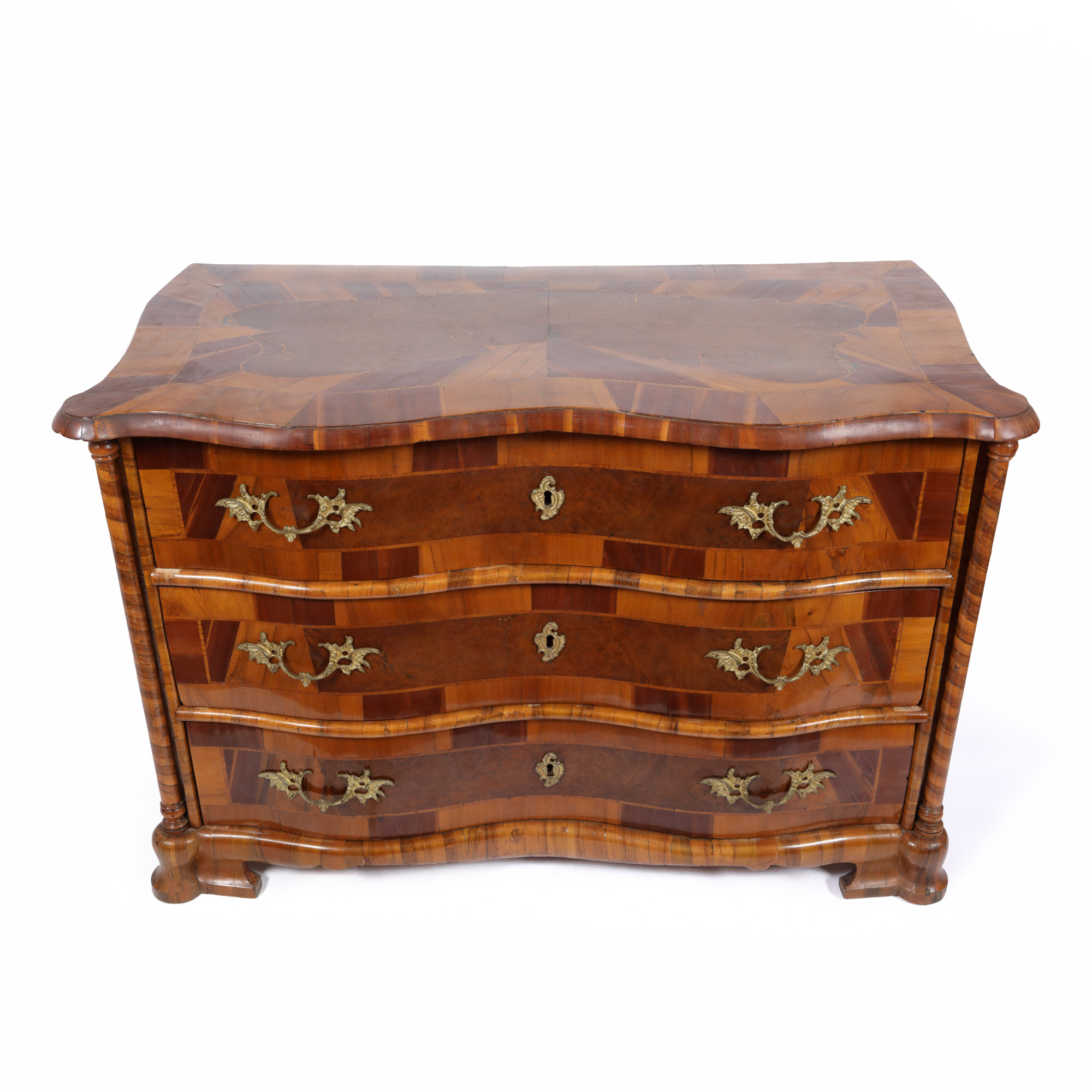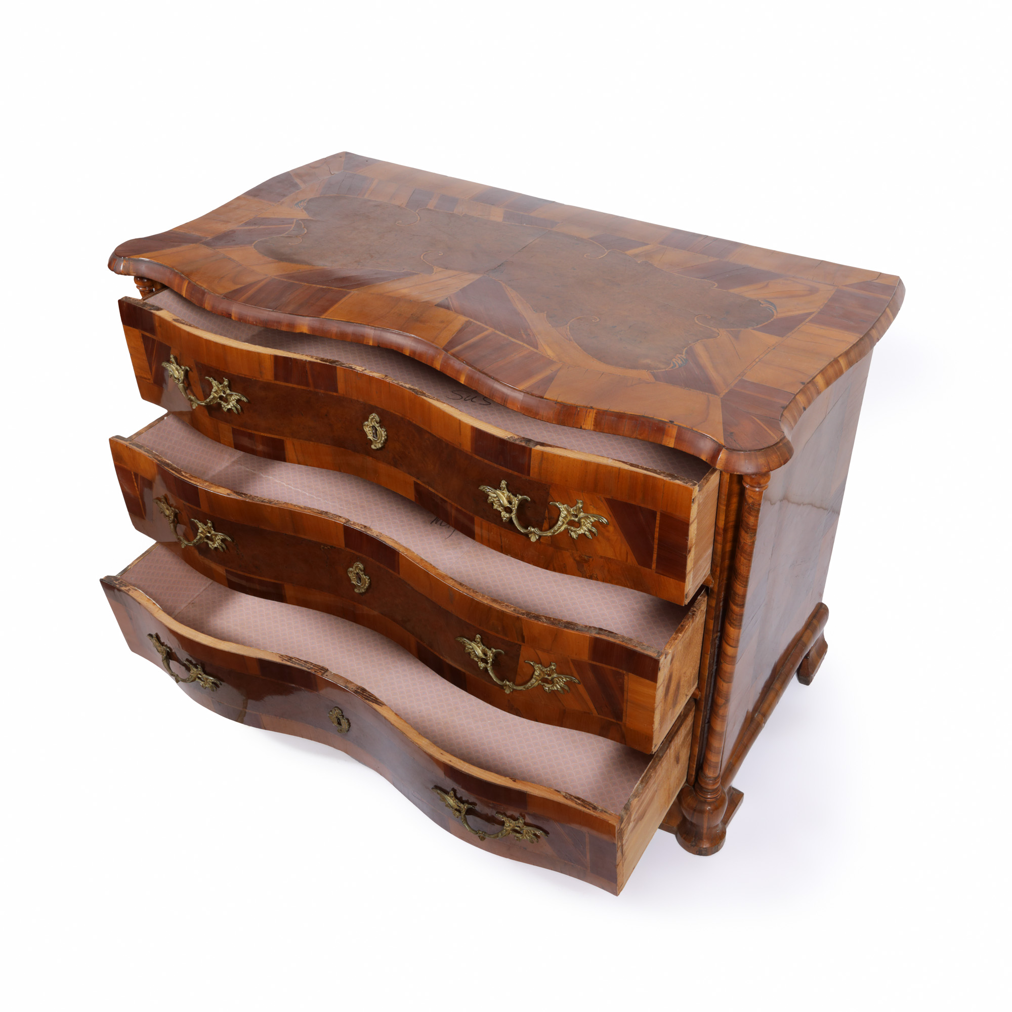 60. Comodă în manieră Barocă, cu marchetărie din lemn de nuc, cca. 1900, provine din colecția Eduard Buianovici