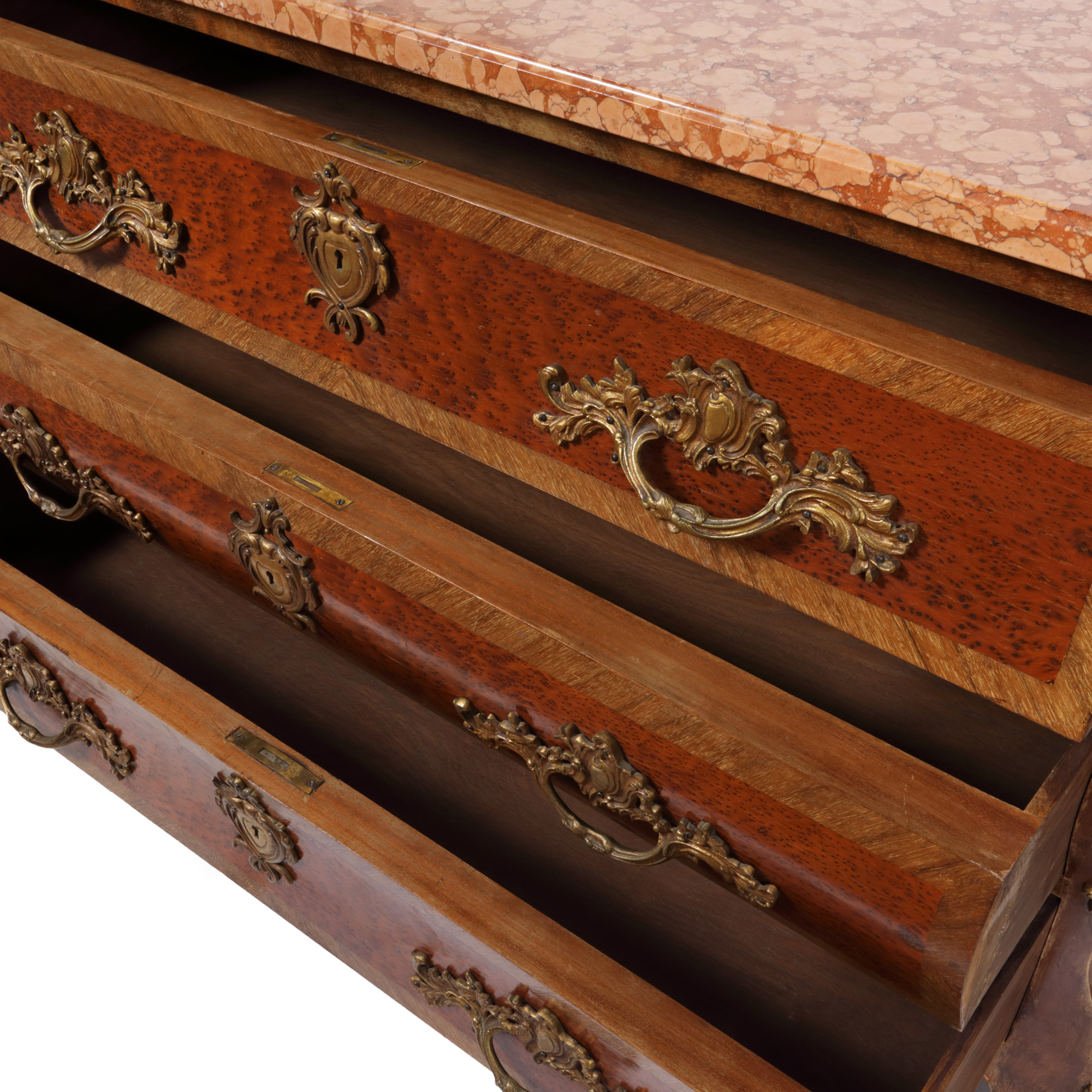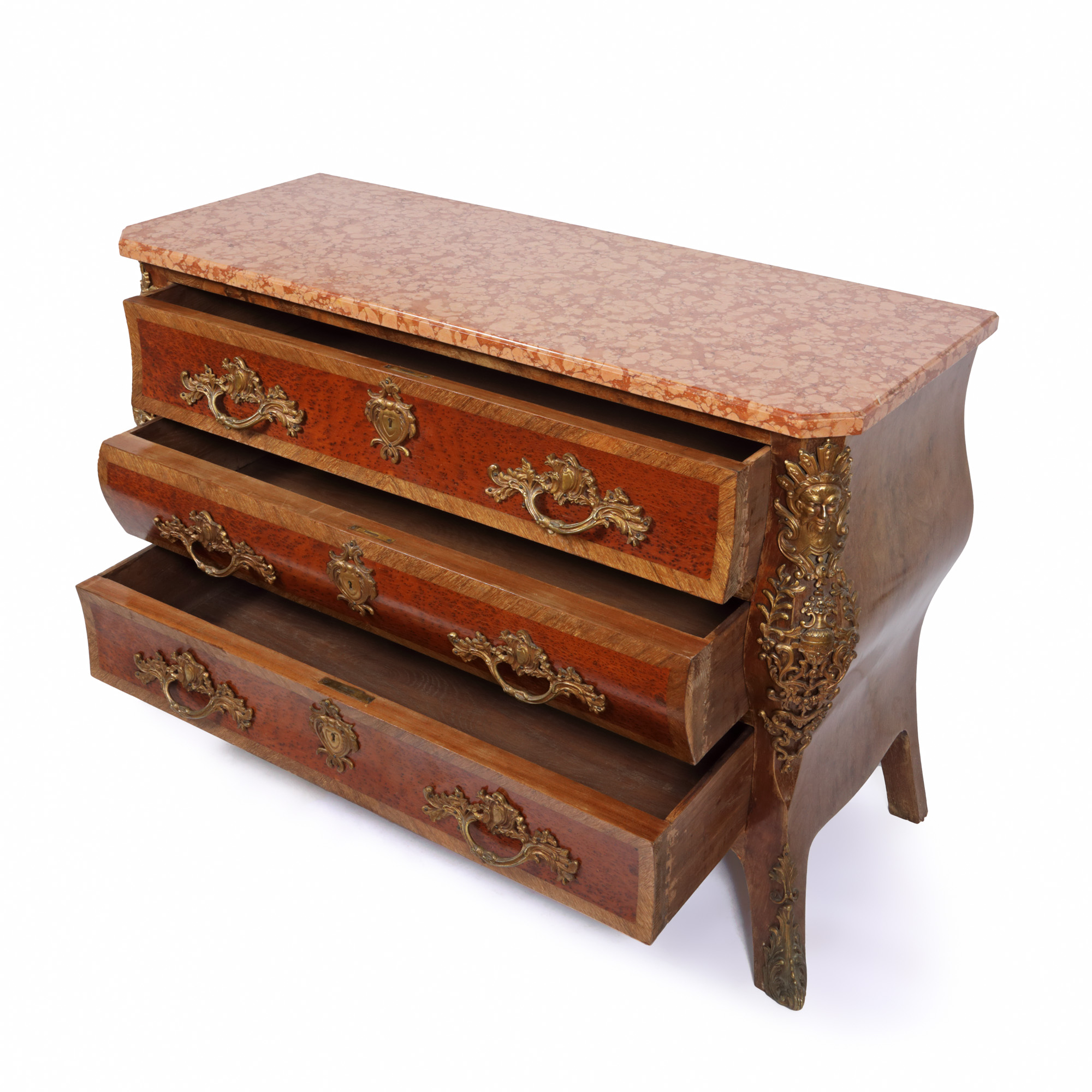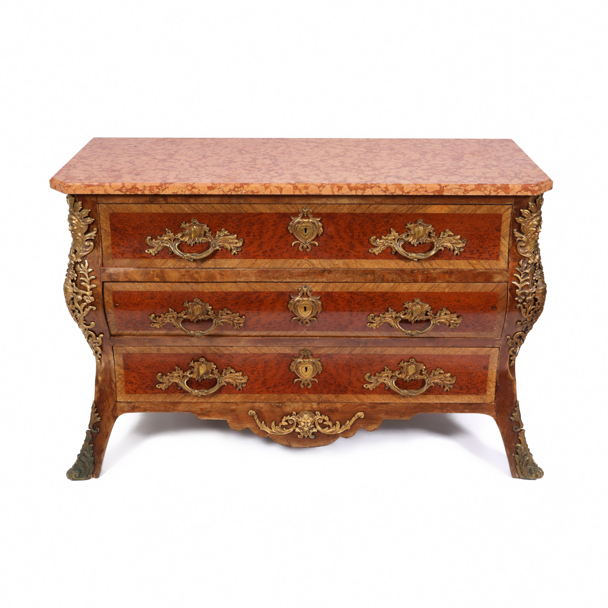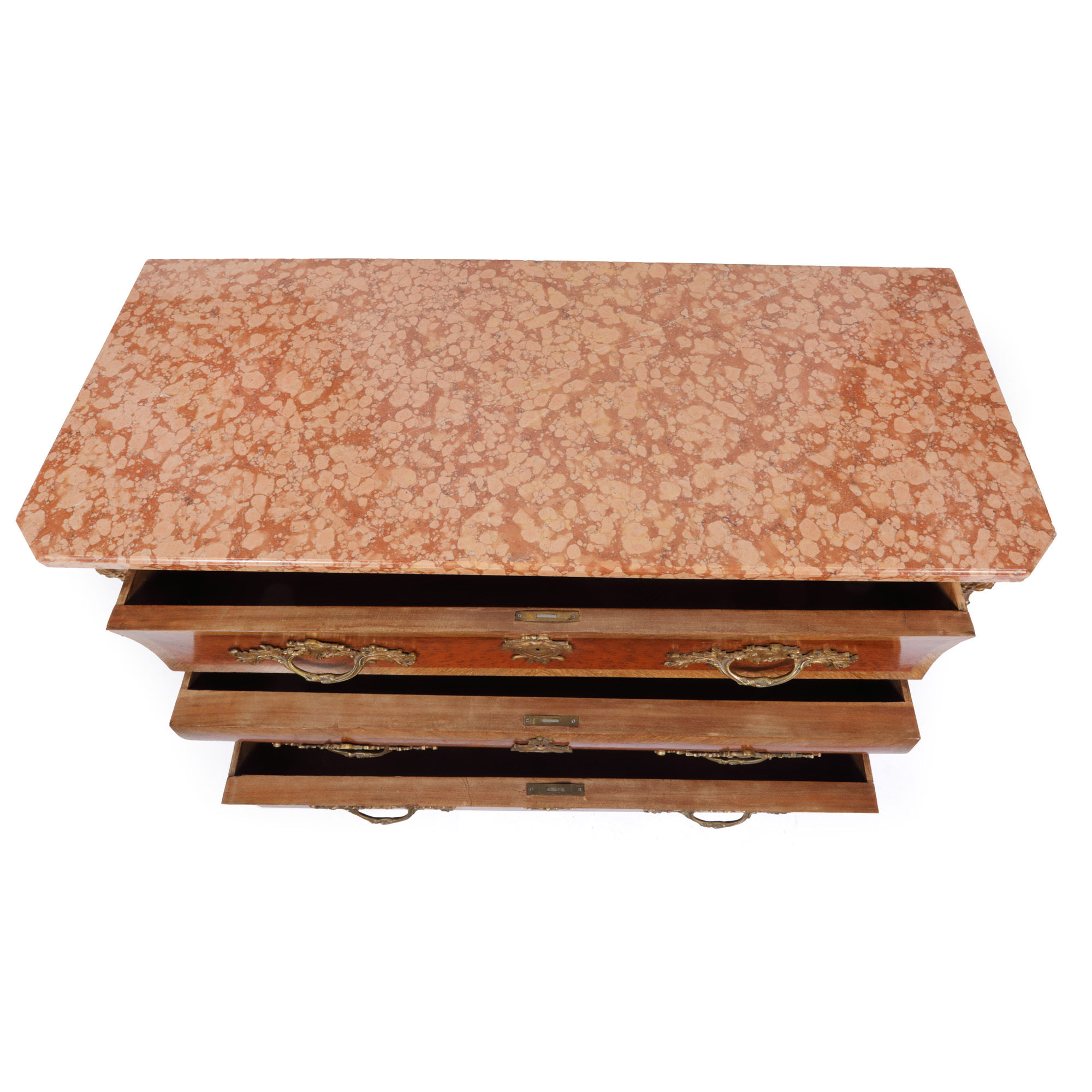 54. Comodă Régence ”en tombeau”, din lemn de esență exotică, cu blat din marmură, cca. 1890