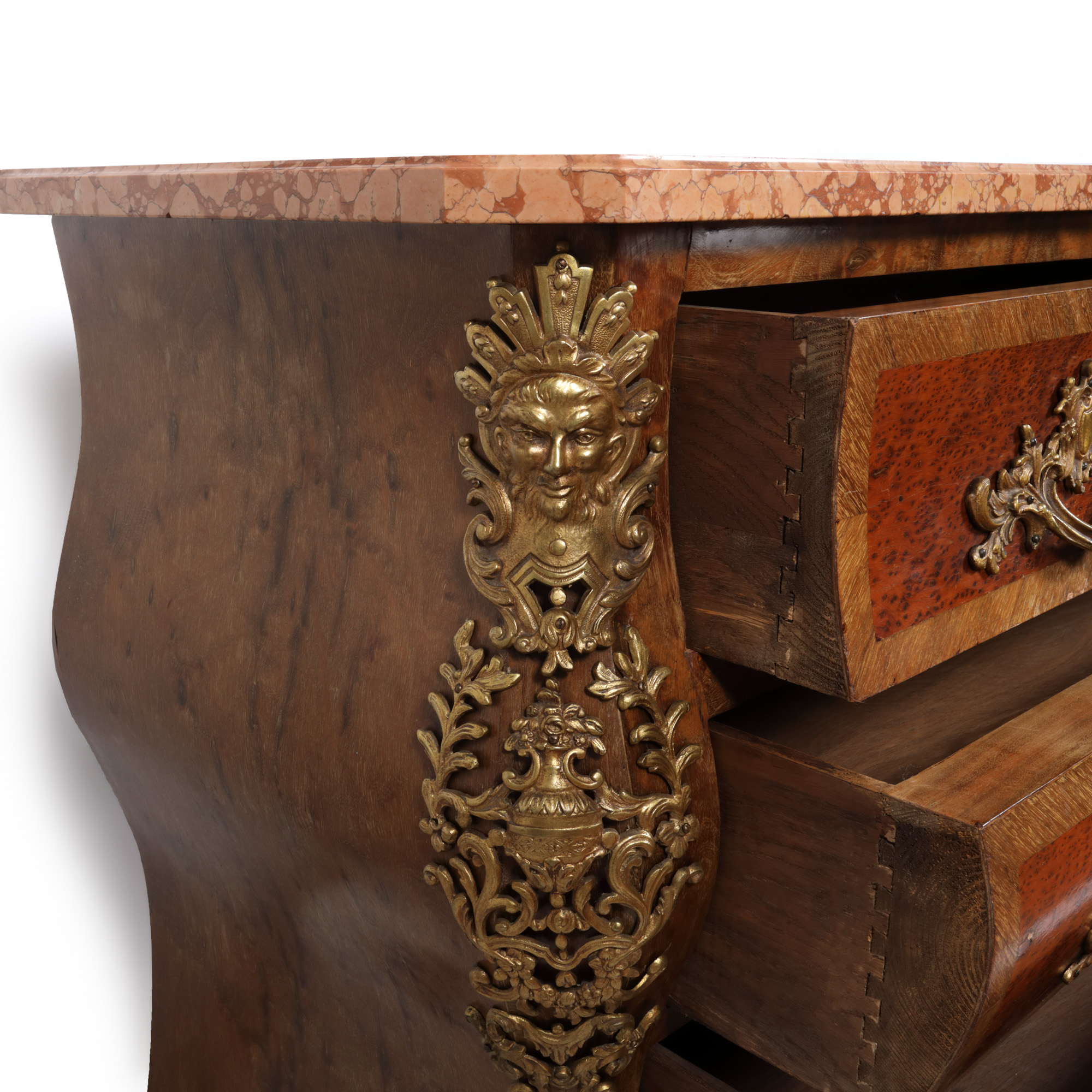 lemn de esență exotică, blat din marmură, bronz aurit, blat din marmură