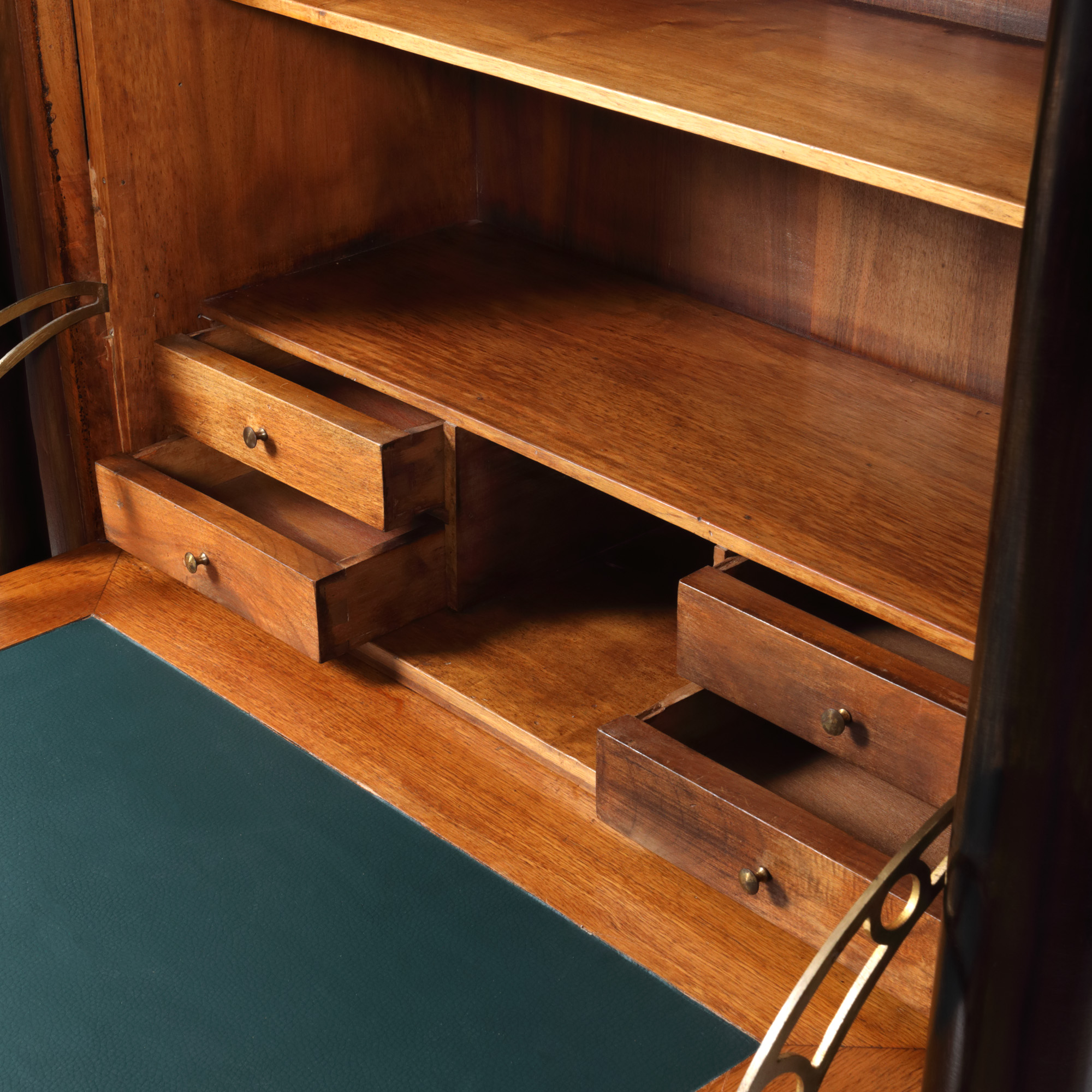 28. Dulap cu secretaire în manieră Empire, din lemn de acaju, decorat cu elemente din alamă, prima jumătate a sec. XX