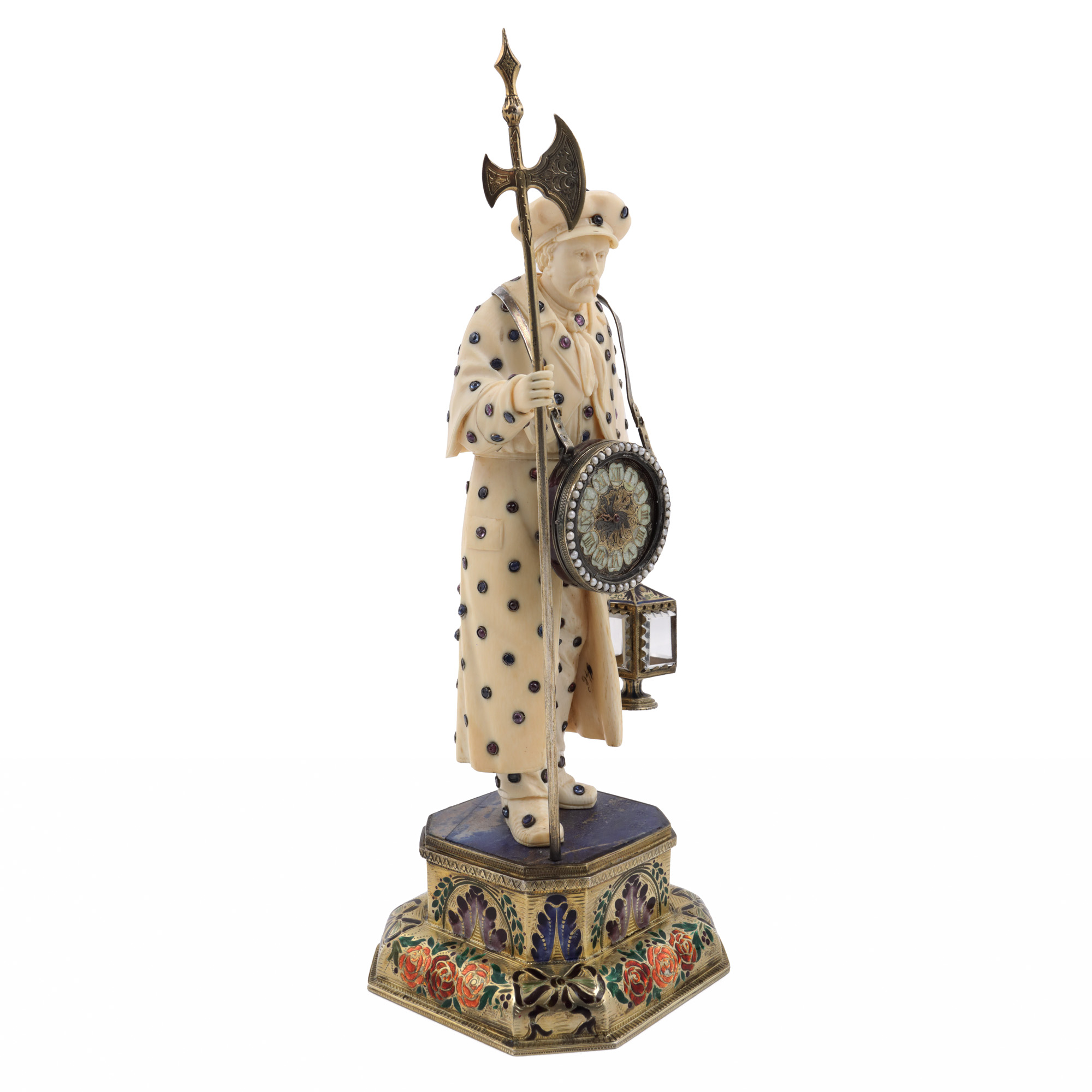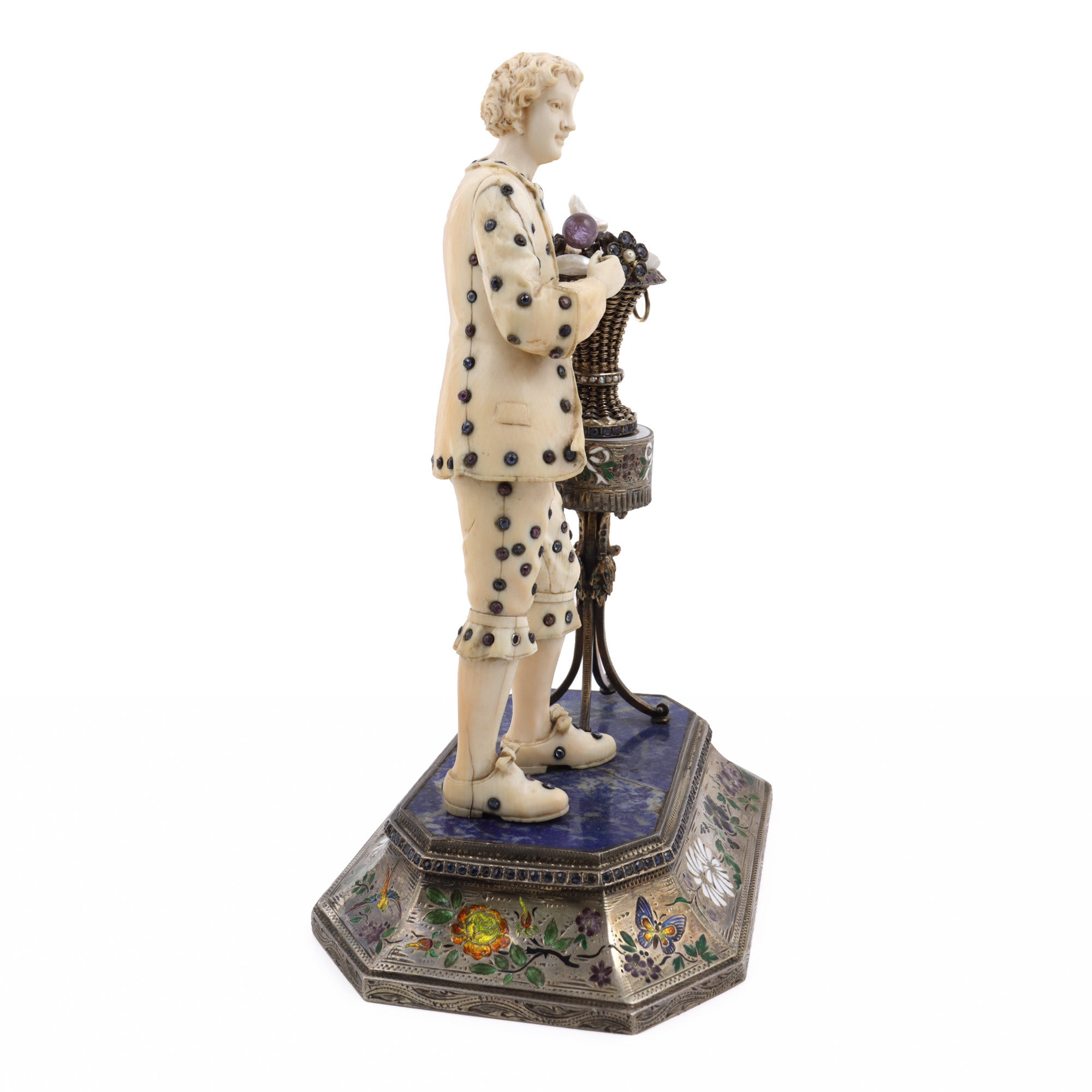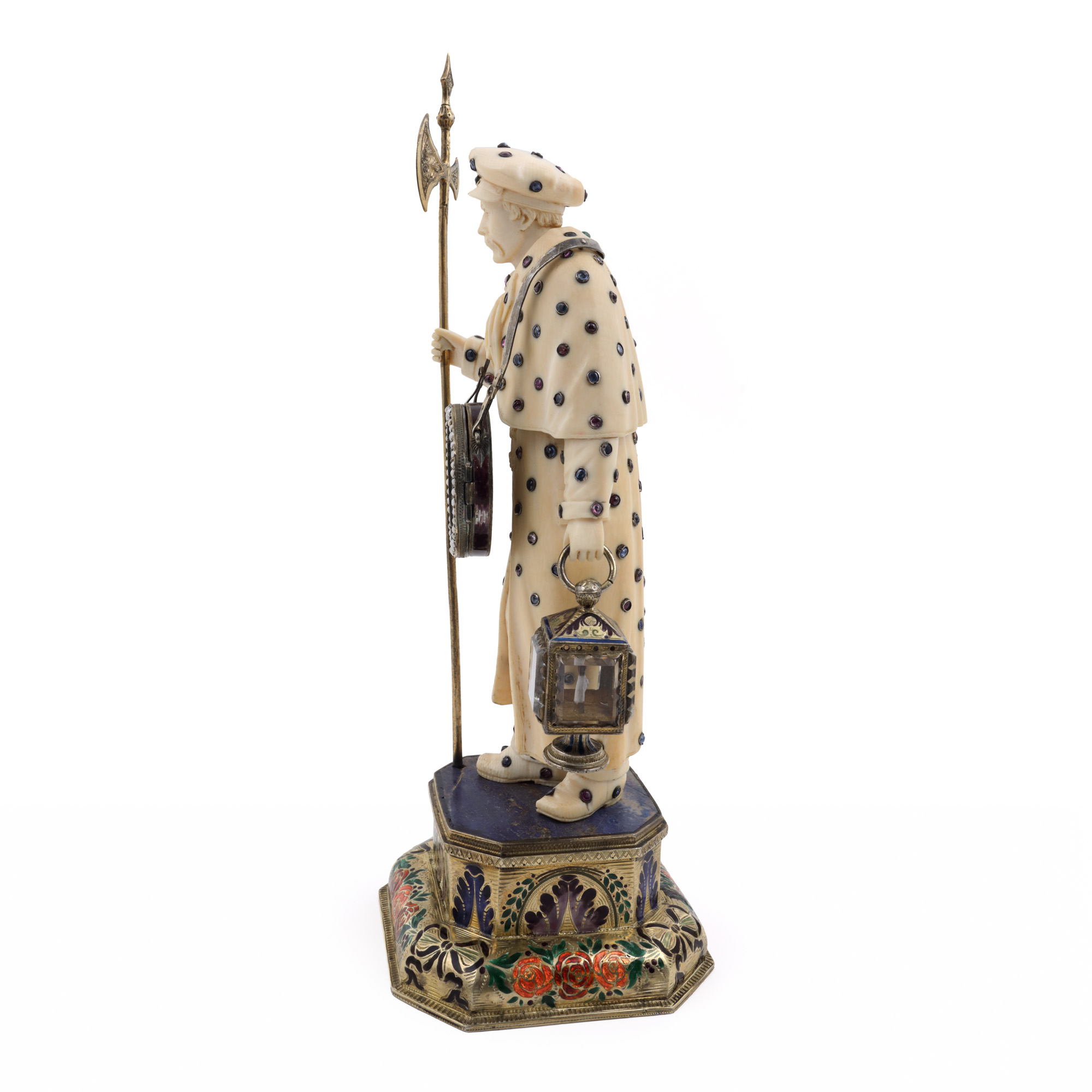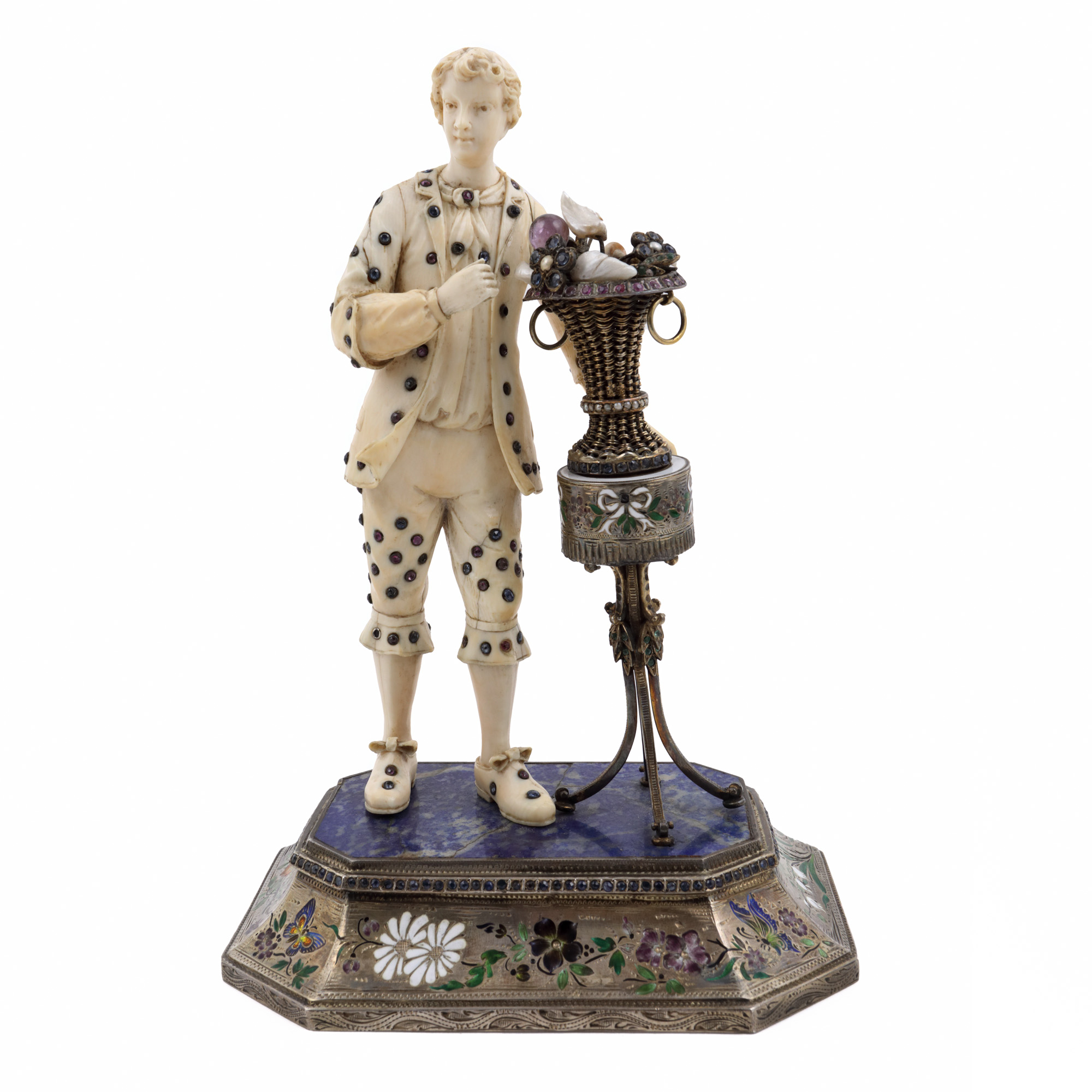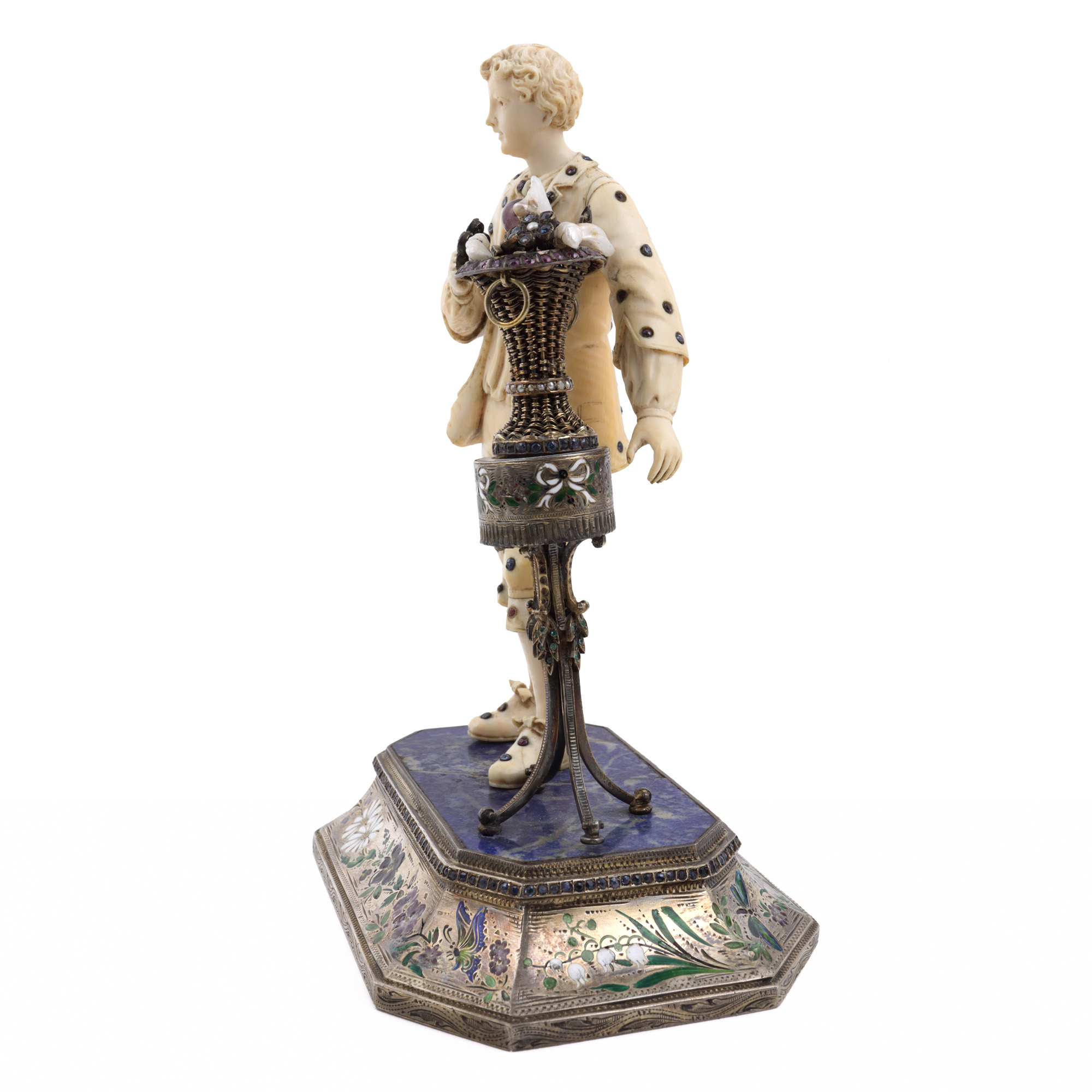 fildeș; lapis lazuli; metal aurit, emailat