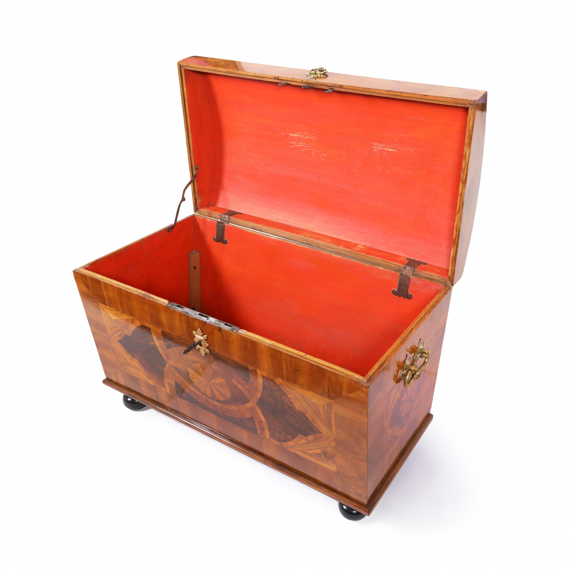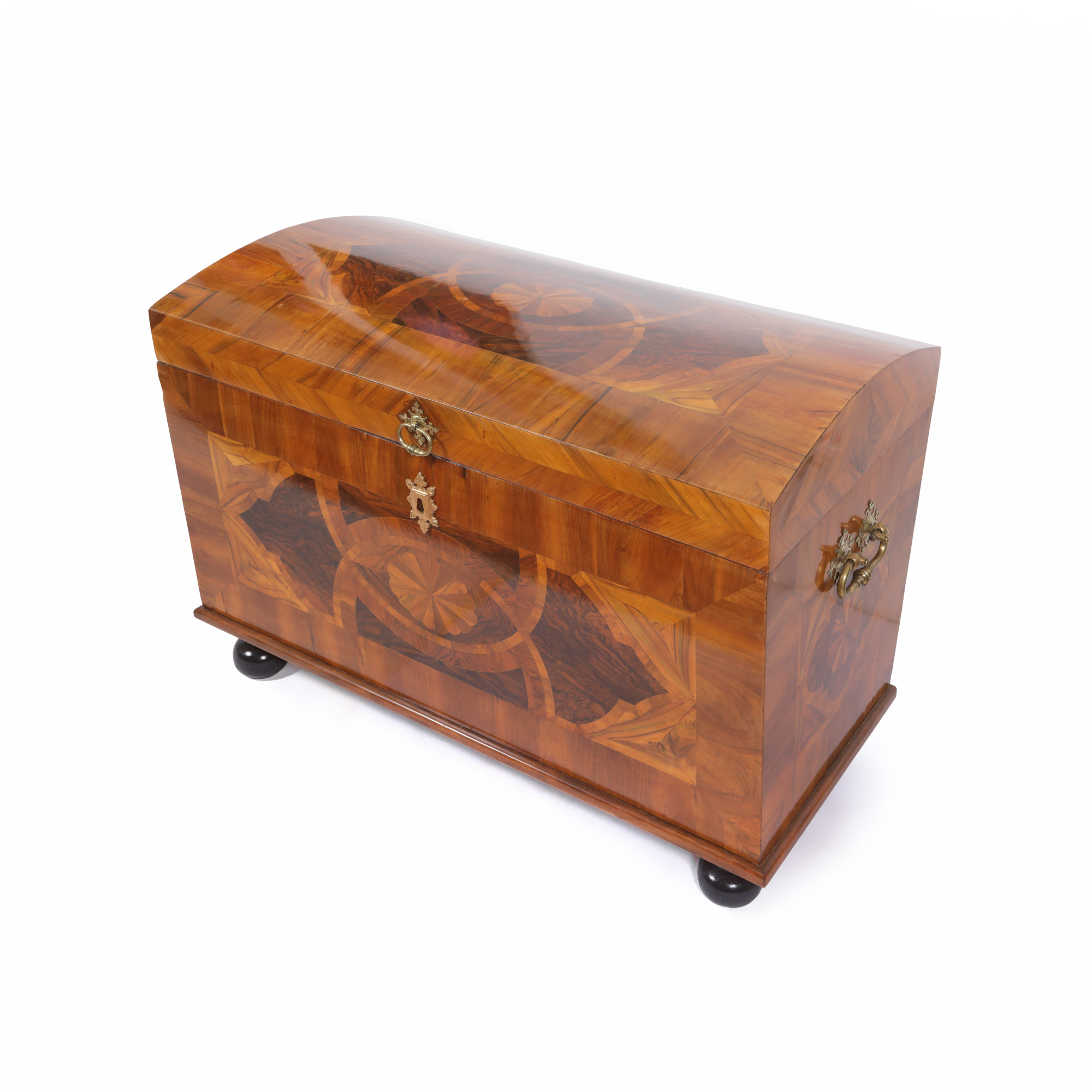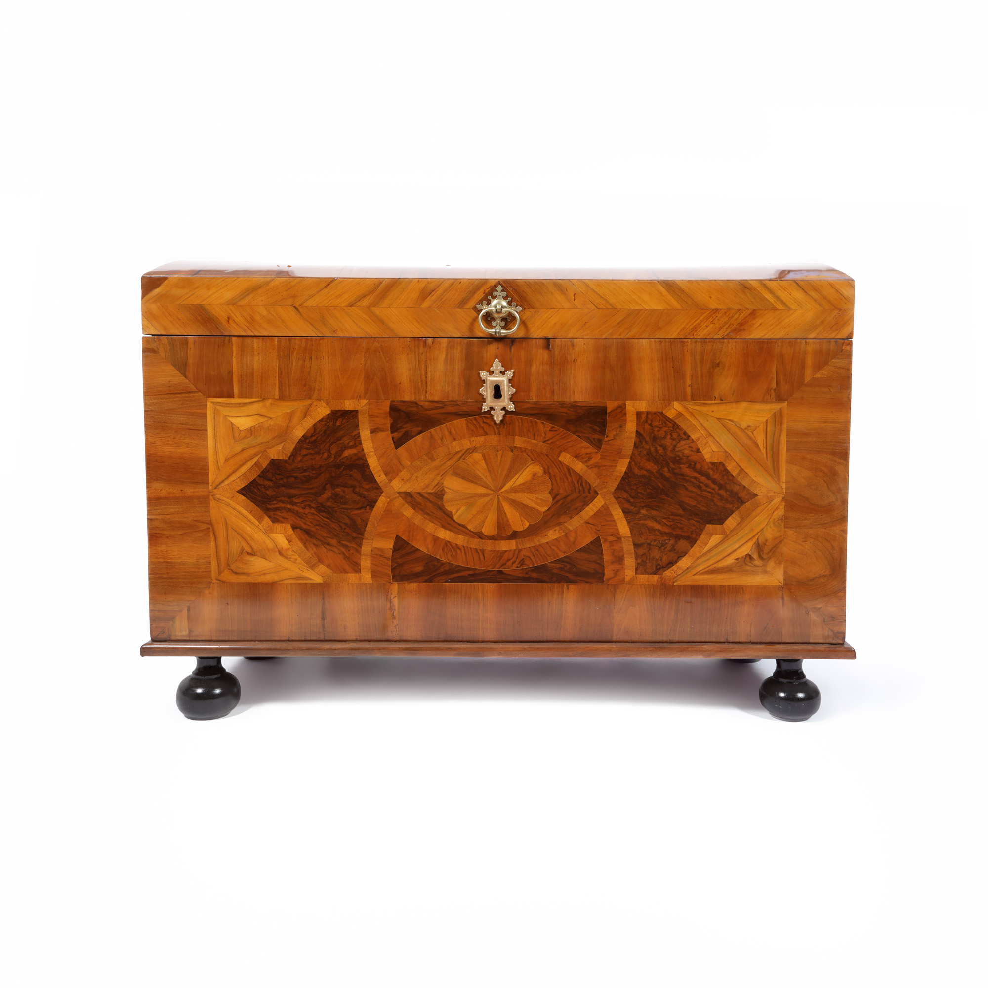 46. Ladă Biedermeier, cu furnir din lemn de nuc și marchetărie, cca. 1918