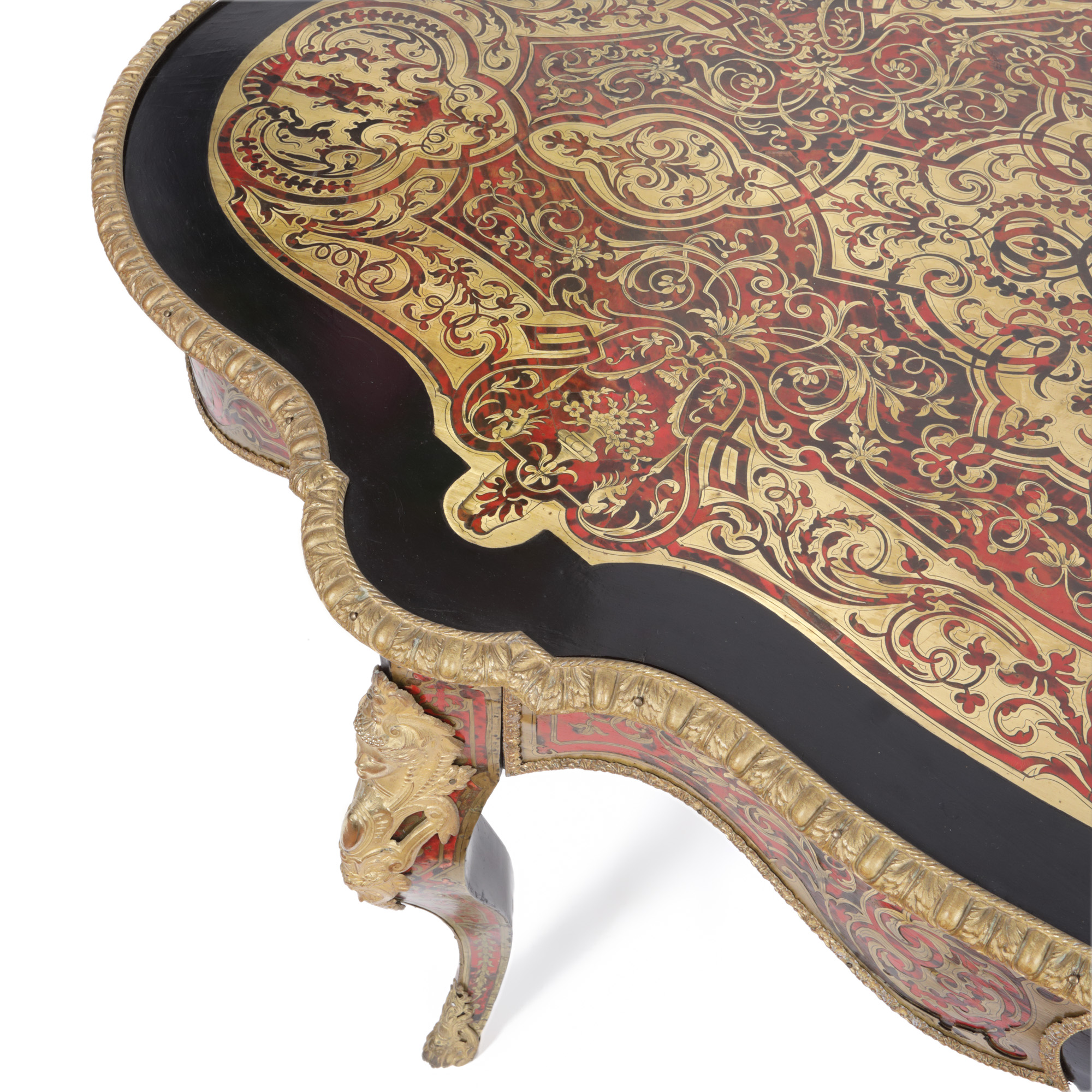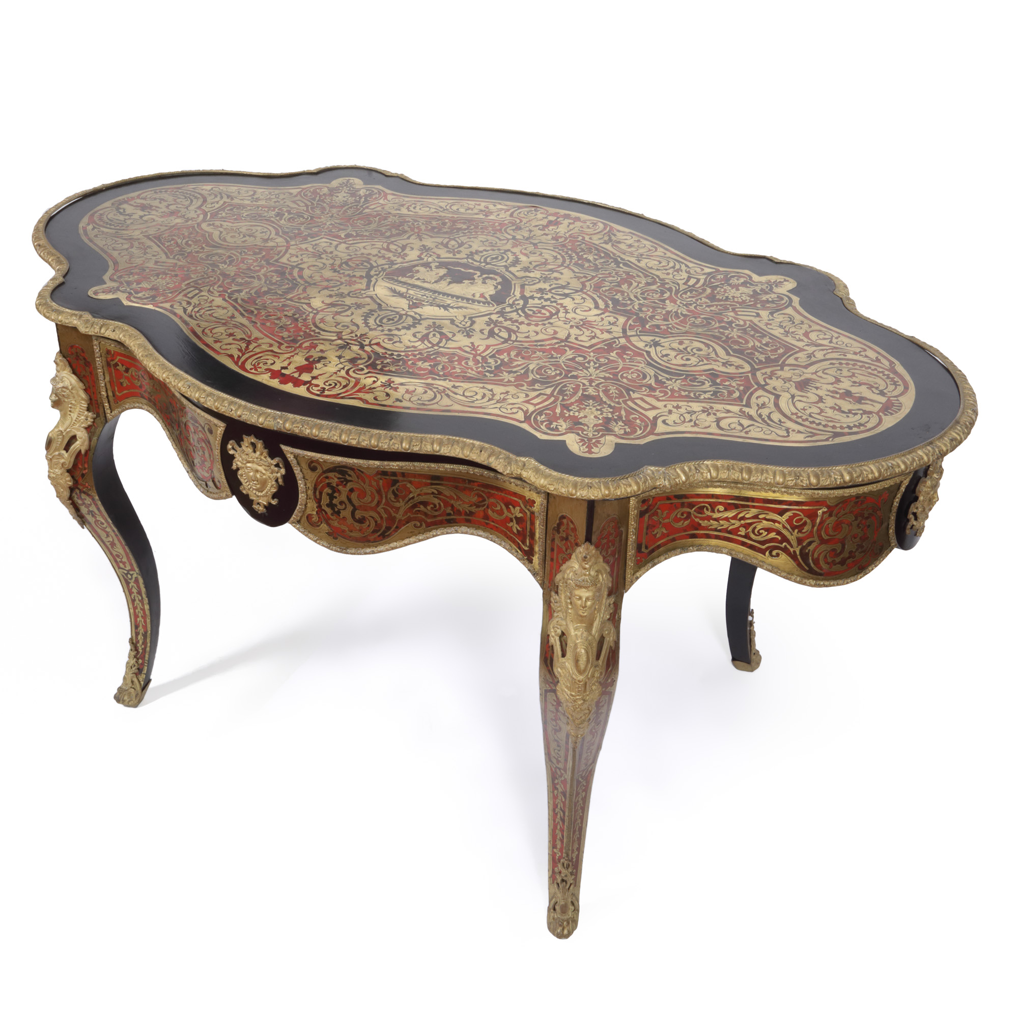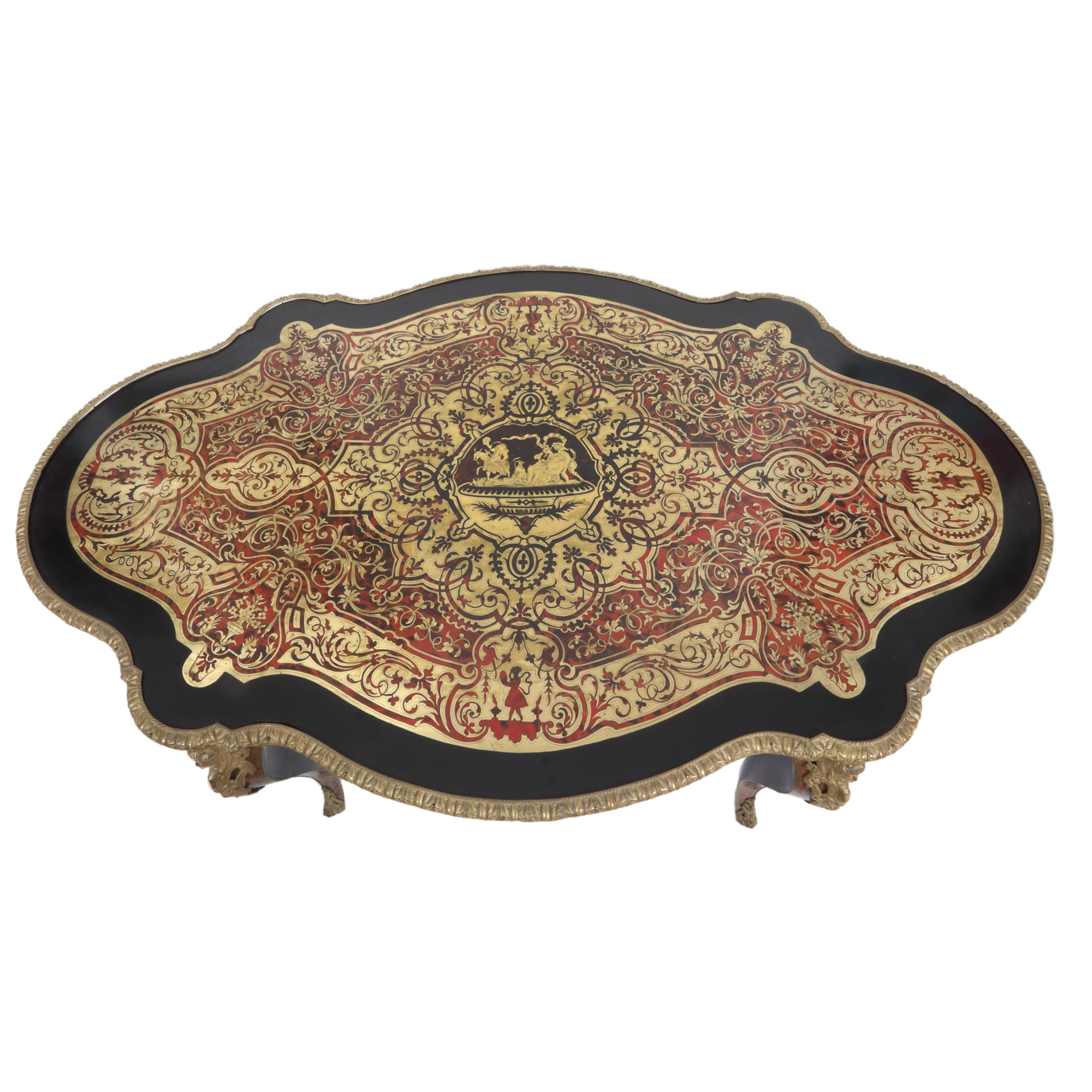 32. Masă de salon în manieră Napoleon III, cu marchetărie tip Boulle, decorată cu scenă mitologică, sfârșit de sec. XIX