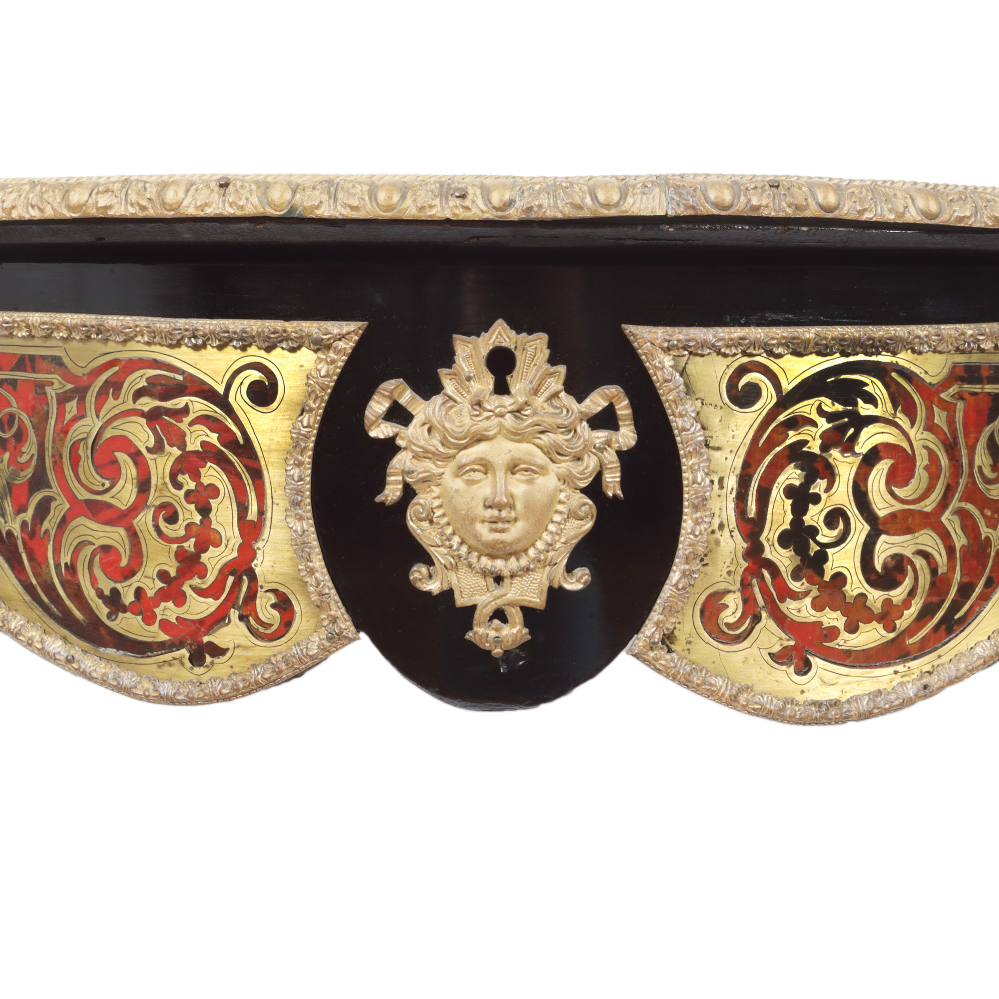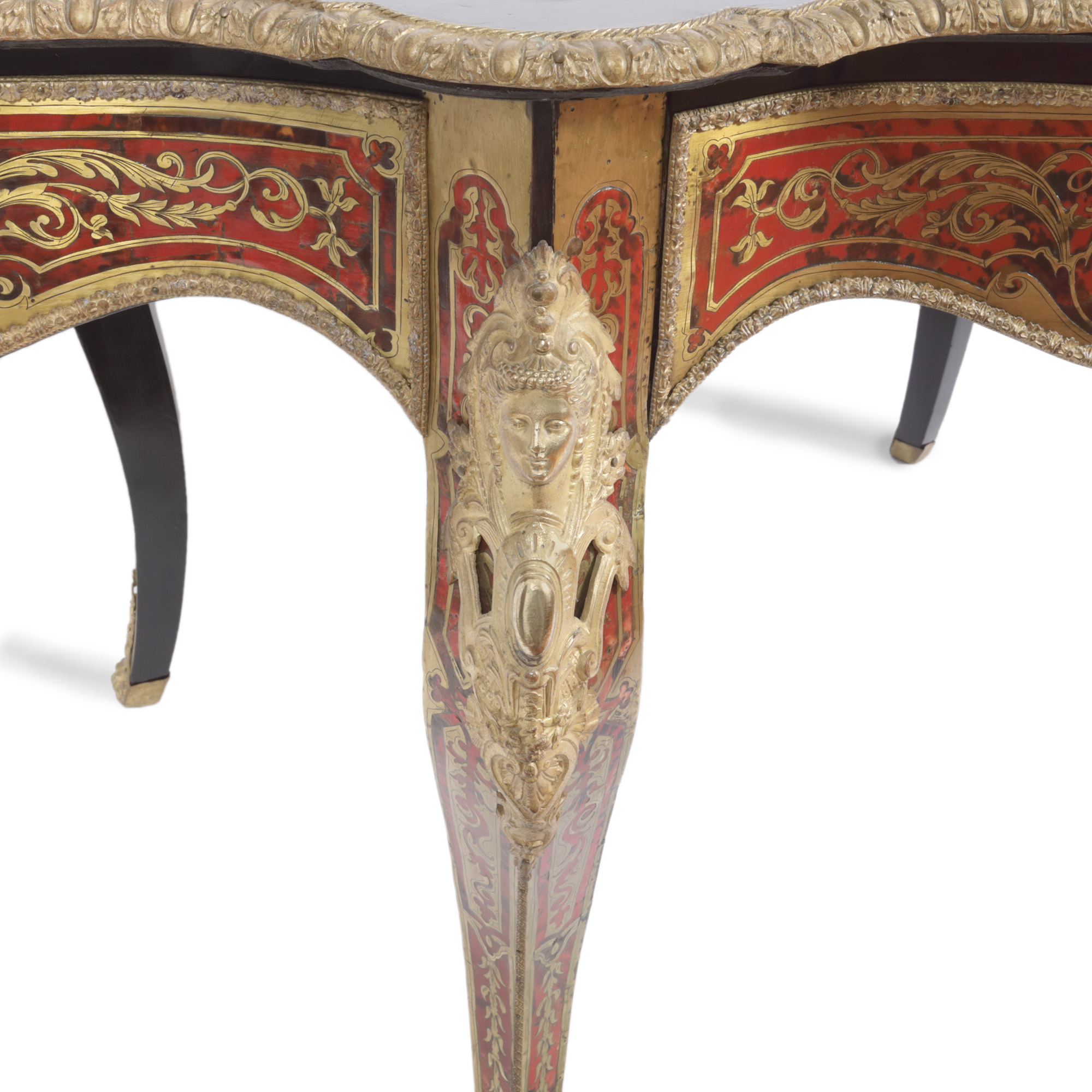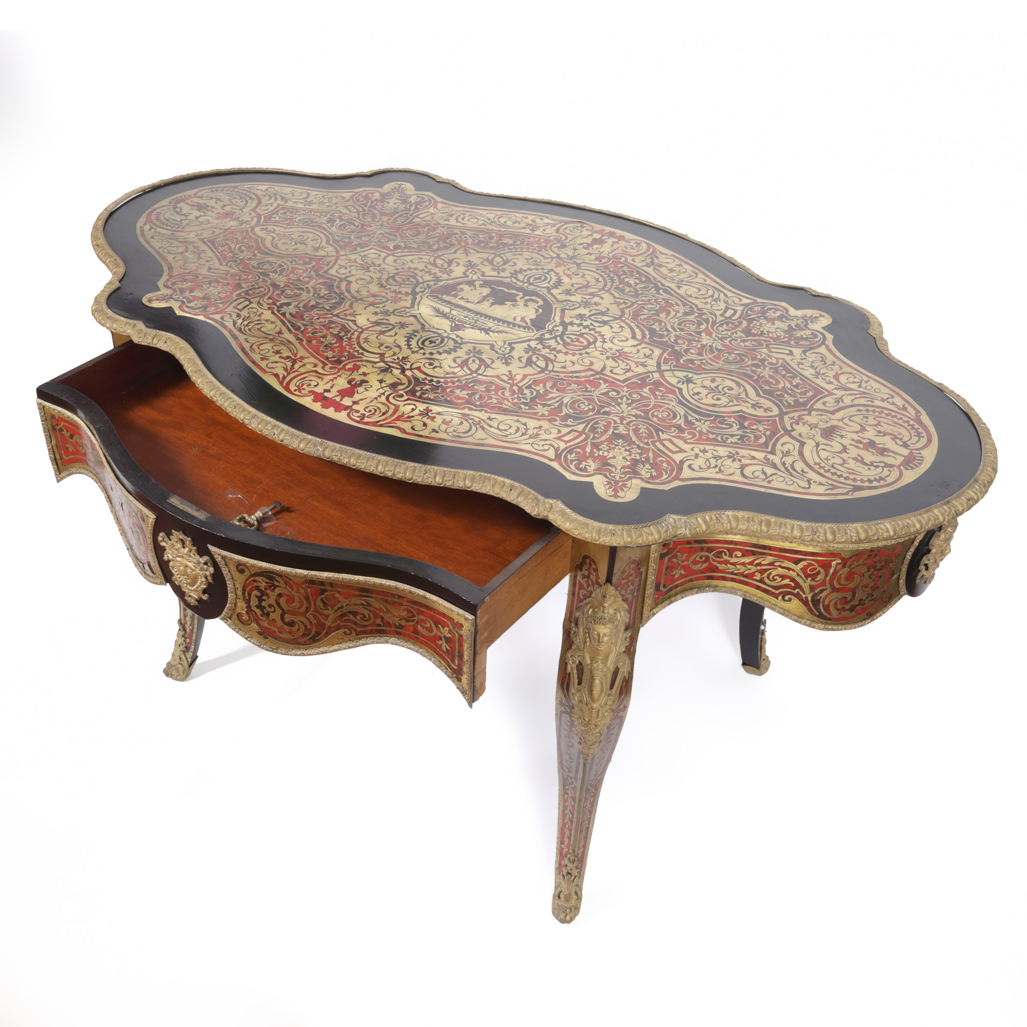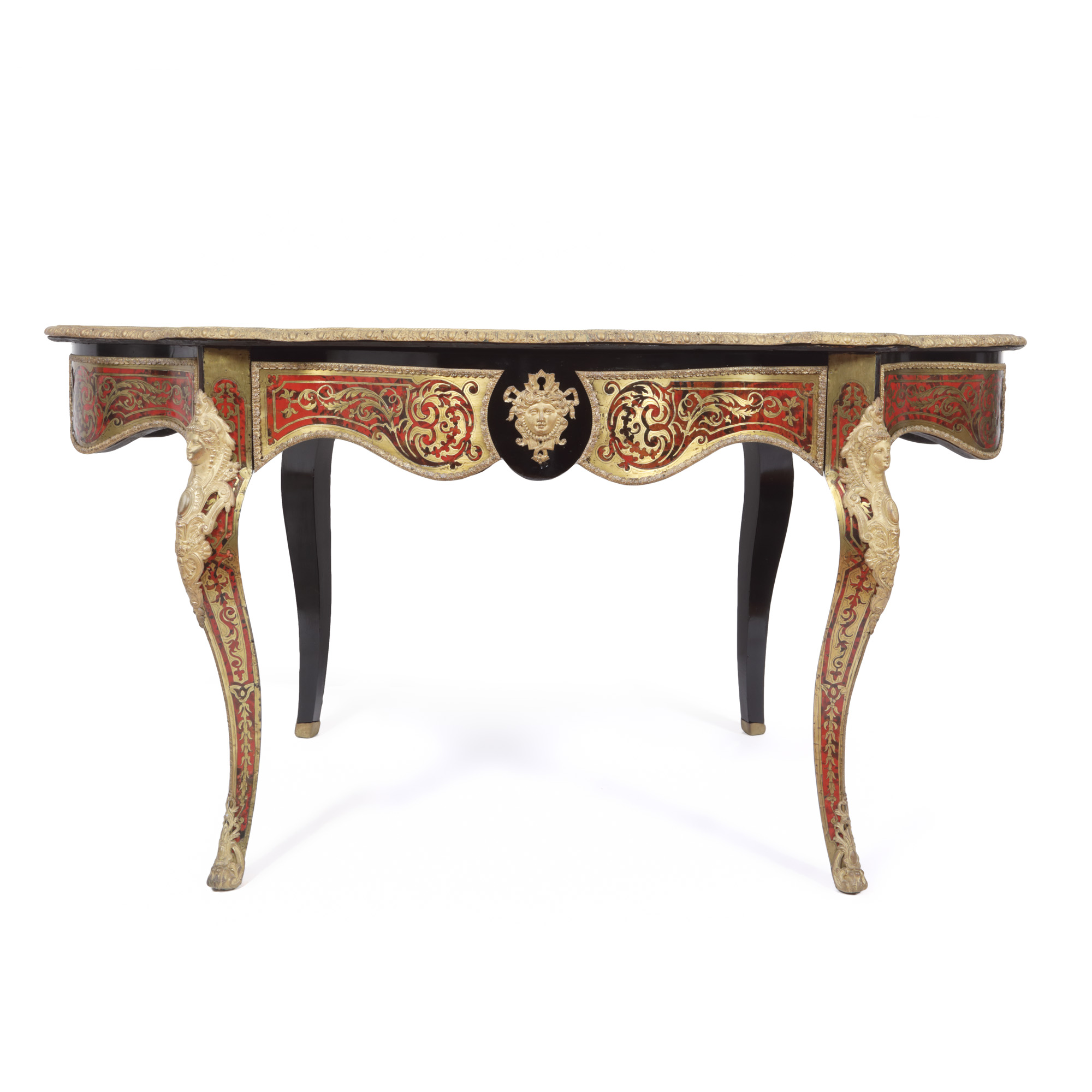 32. Masă de salon în manieră Napoleon III, cu marchetărie tip Boulle, decorată cu scenă mitologică, sfârșit de sec. XIX