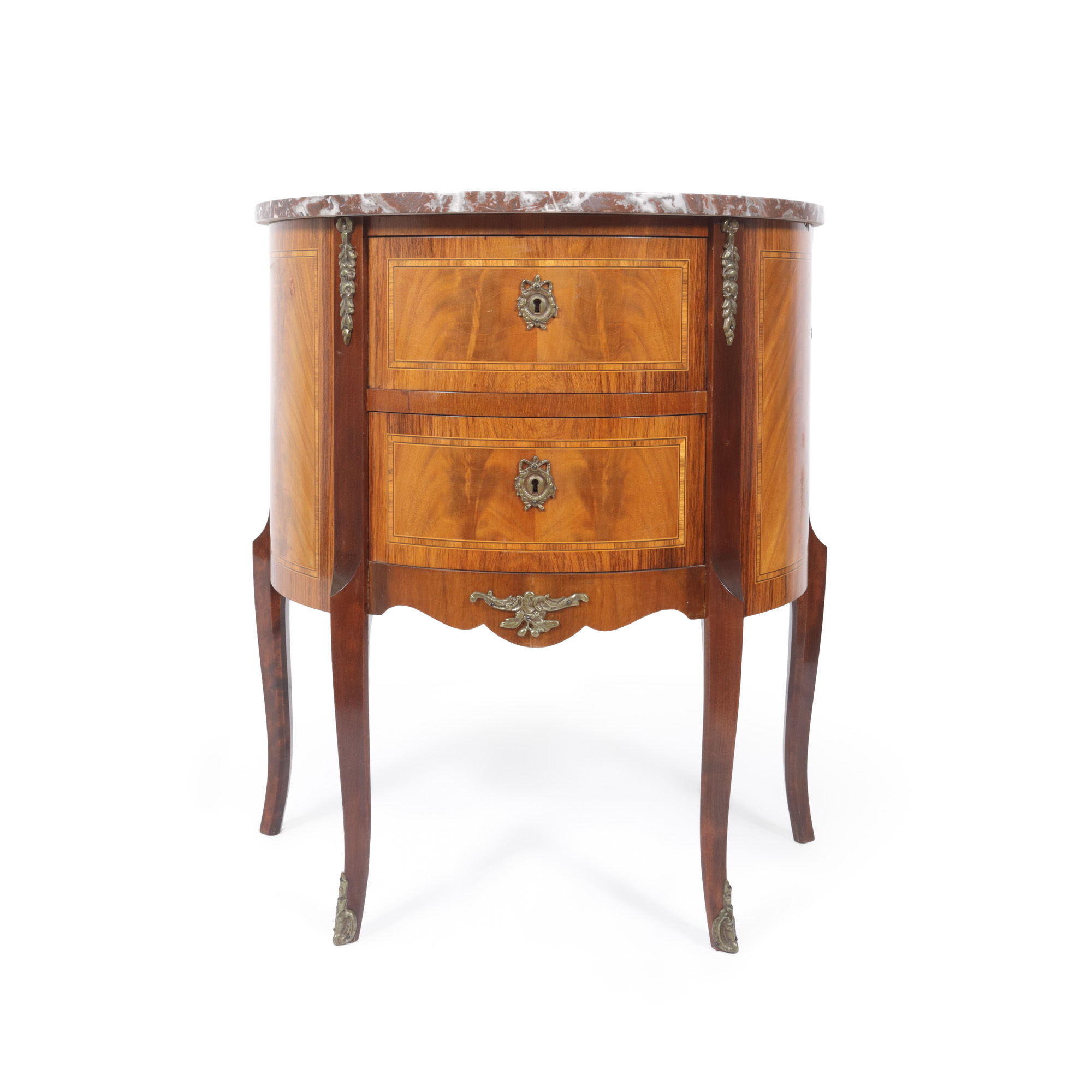 36. Mică comodă Louis XV, cu marchetărie și marmură de Siena, sfârșitul sec. XIX