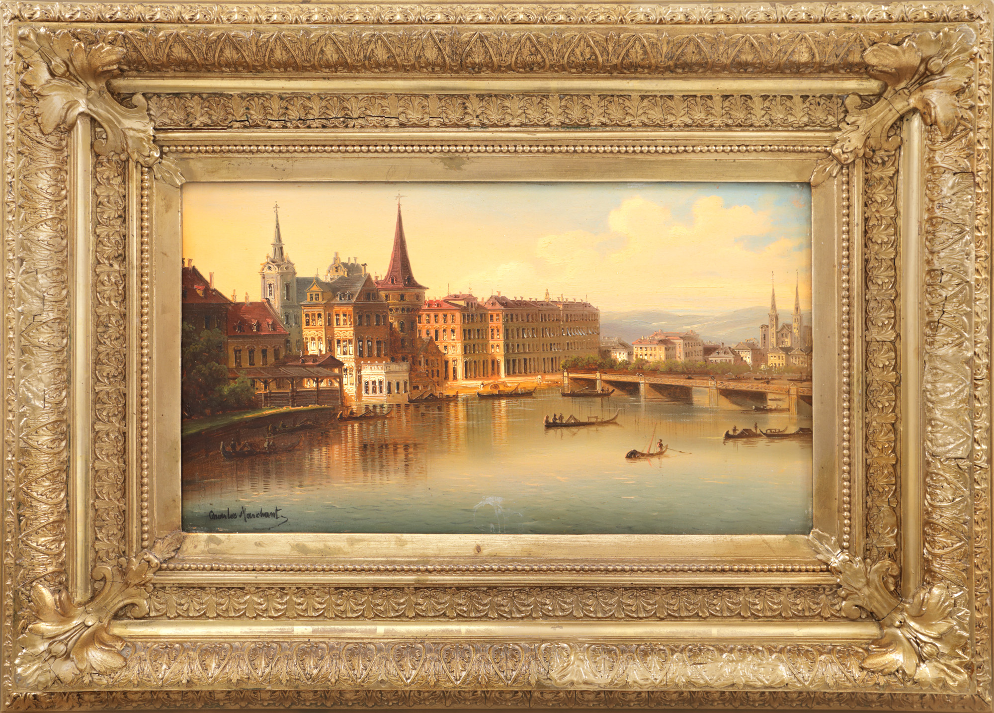 semnat stânga jos, în pseudonim, cu negru, ”Charles Marchant”