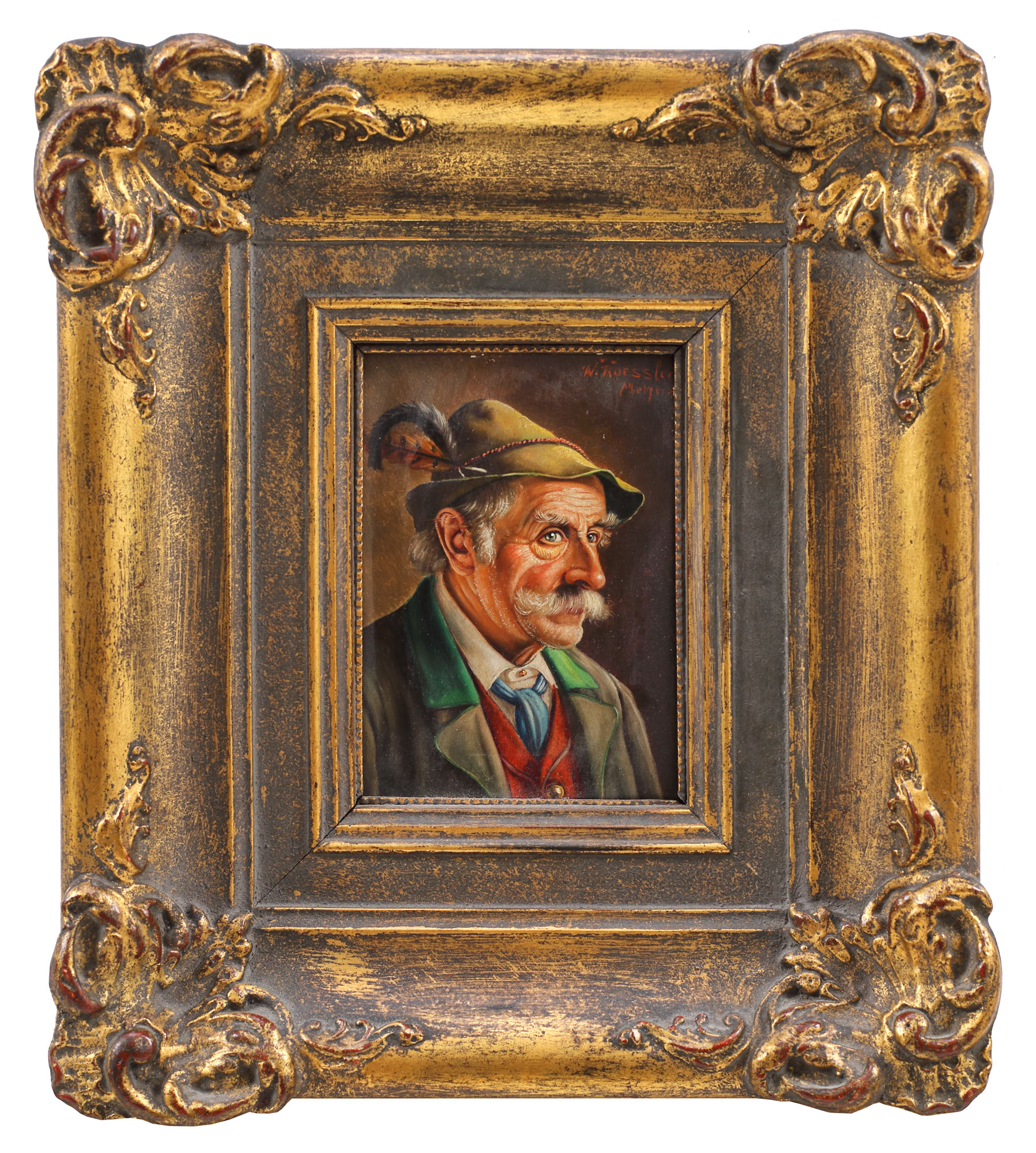 semnat și localizat dreapta sus, cu roșu, ”W. Roessler Mchn.”