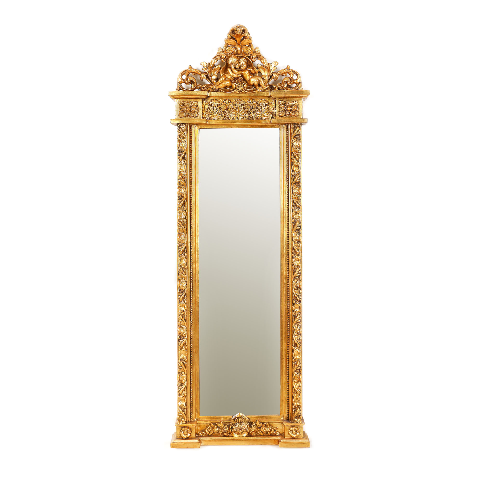 44. Consolă cu oglindă, în manieră Louis XV, din lemn aurit, sfârșitul sec. XIX