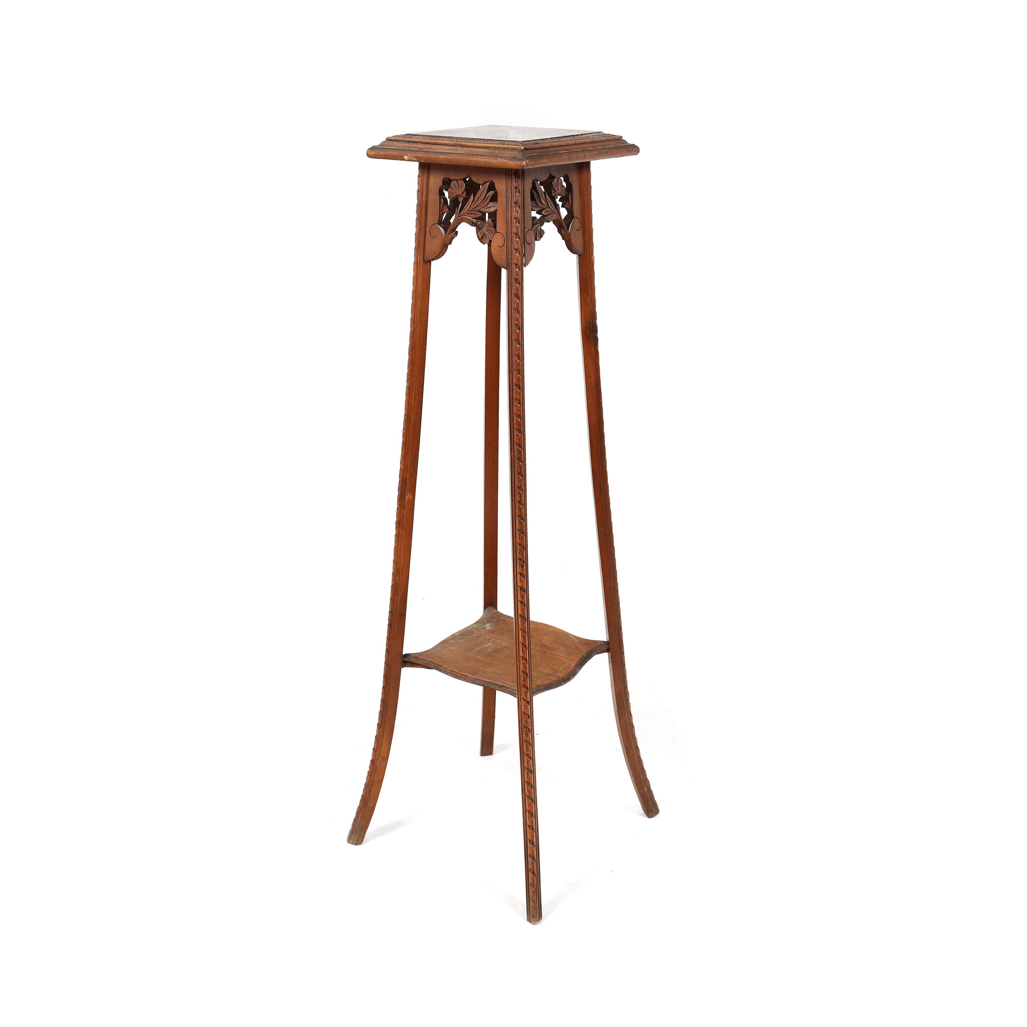 38. Piedestal din lemn de fag, decorat cu motiv floral, începutul sec. XX