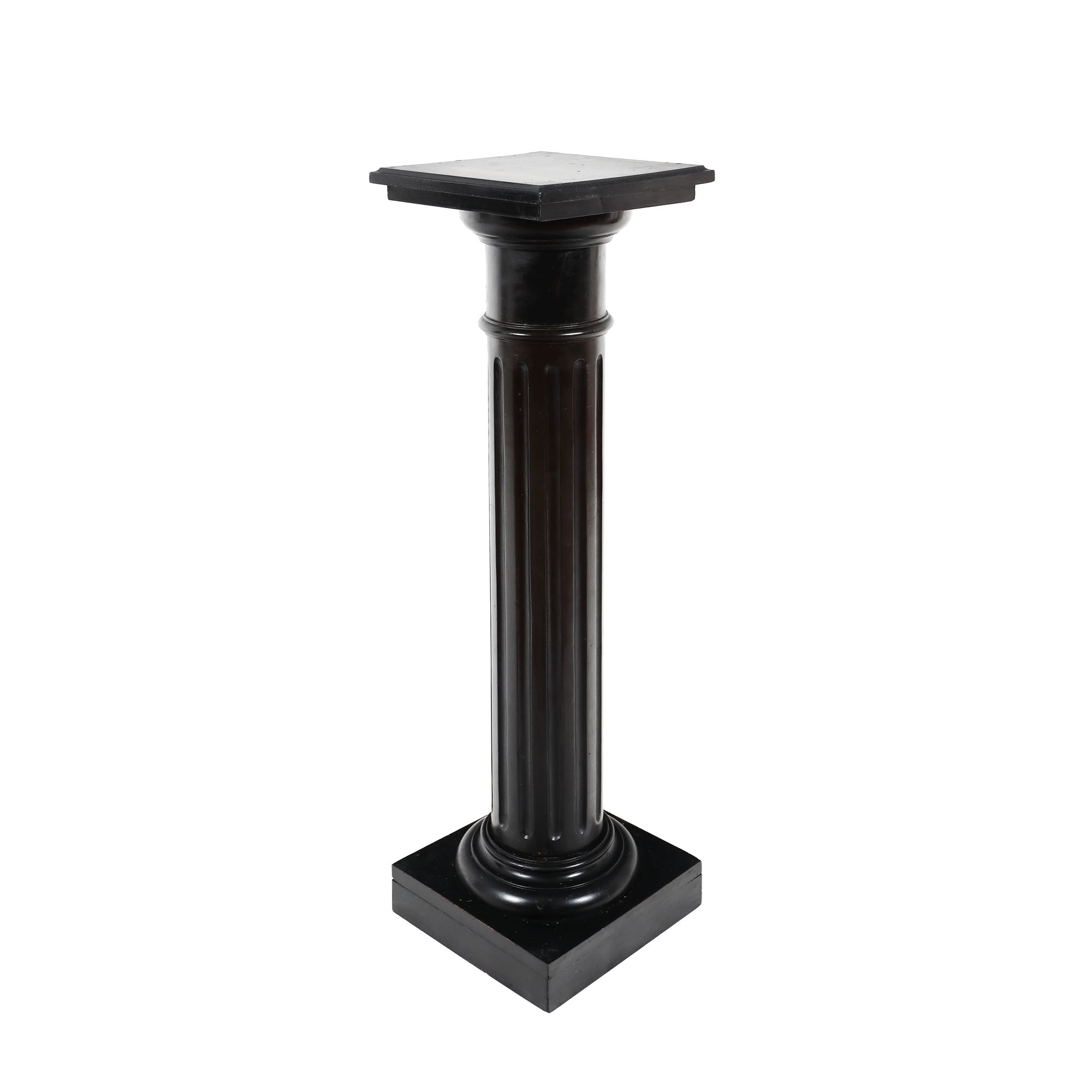 Piedestal cu picior coloană canelată, capitel doric și blat pătrat.