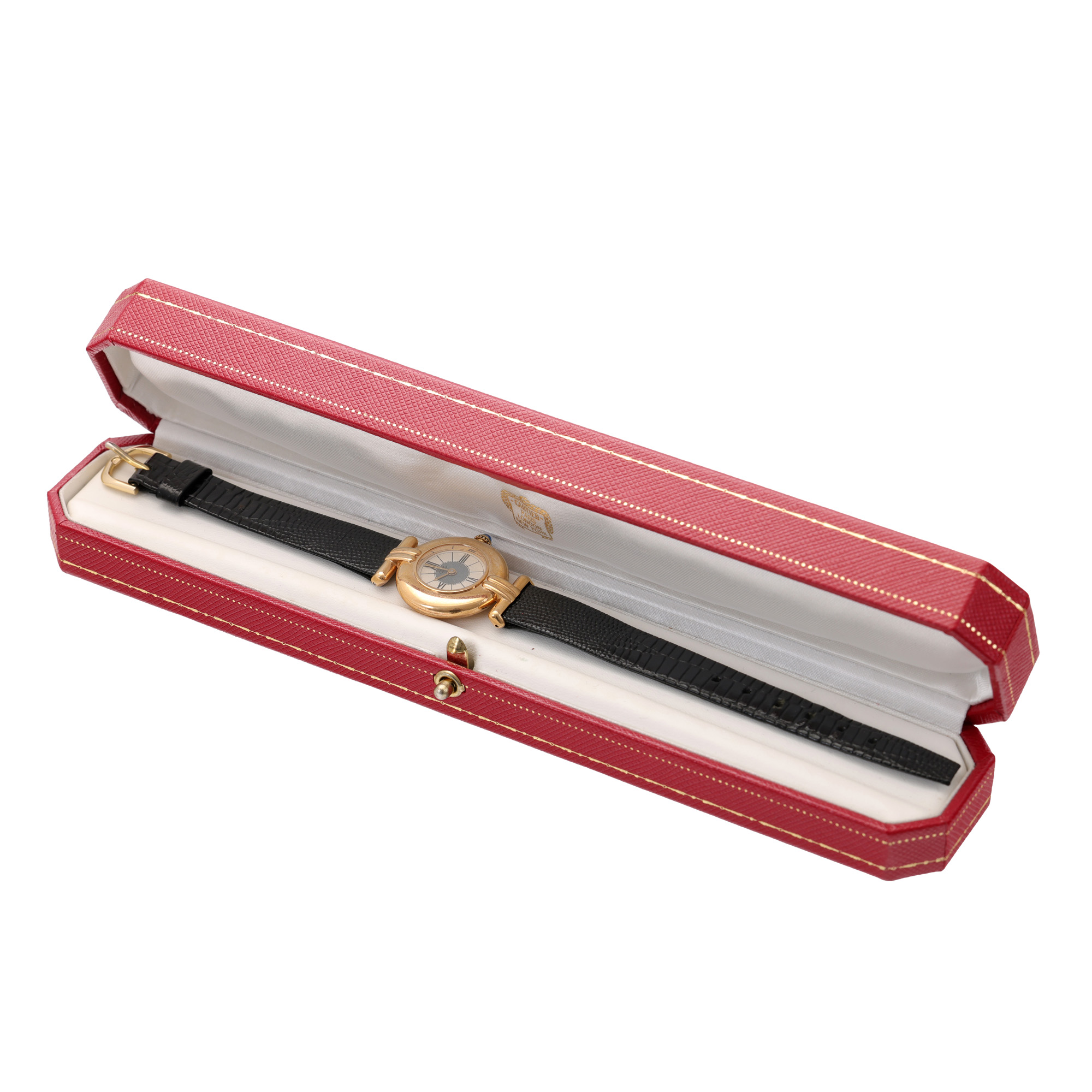 10. Ceas Cartier Colisee Vermeil, din argint placat cu aur, de mână, de damă, însoțit de cutia originală [Cca. 1995]