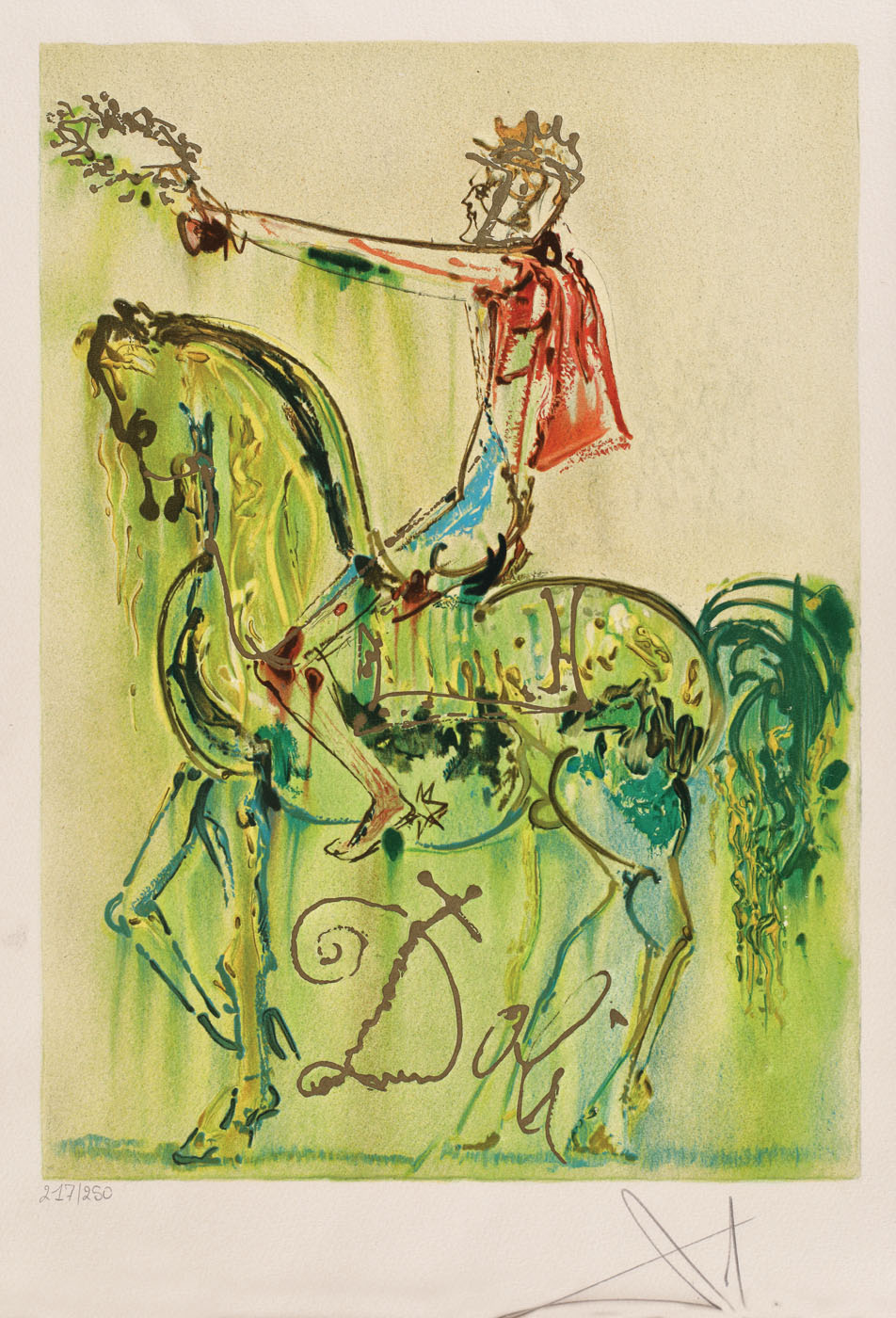 semnat, gravat, dreapta jos, în placă, "Dali"; semnat dreapta jos, sub cadru, în creion, "Dali"; numerotat stânga jos, sub cadru, în creion, "217/250"