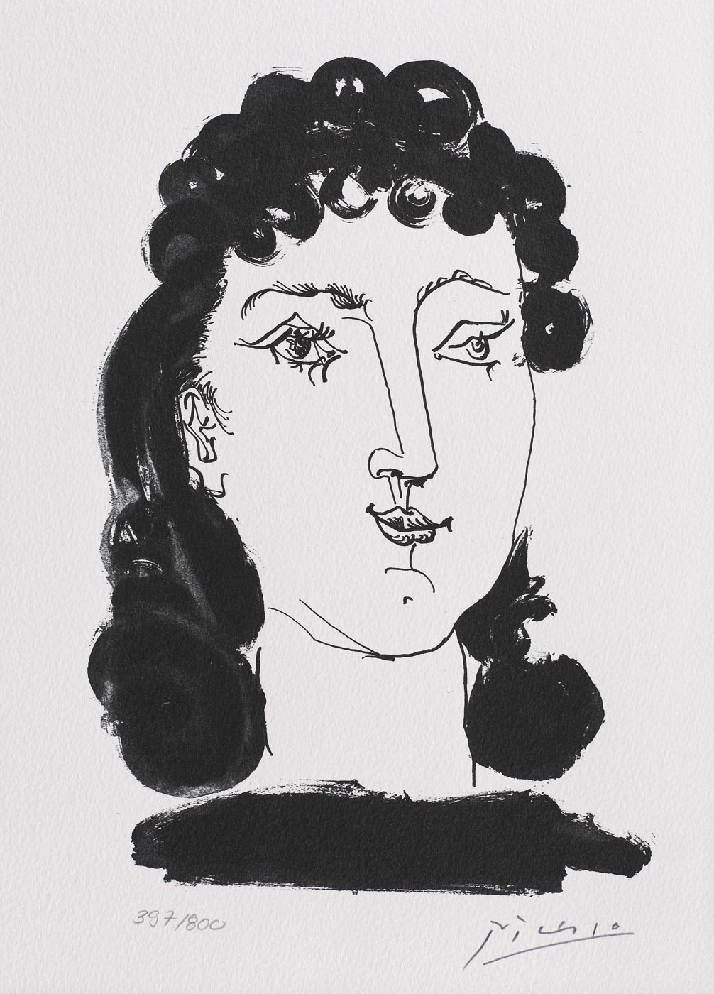 semnat, gravat, dreapta jos, în placă, "Picasso"; numerotat stânga jos, în creion, "397/800"