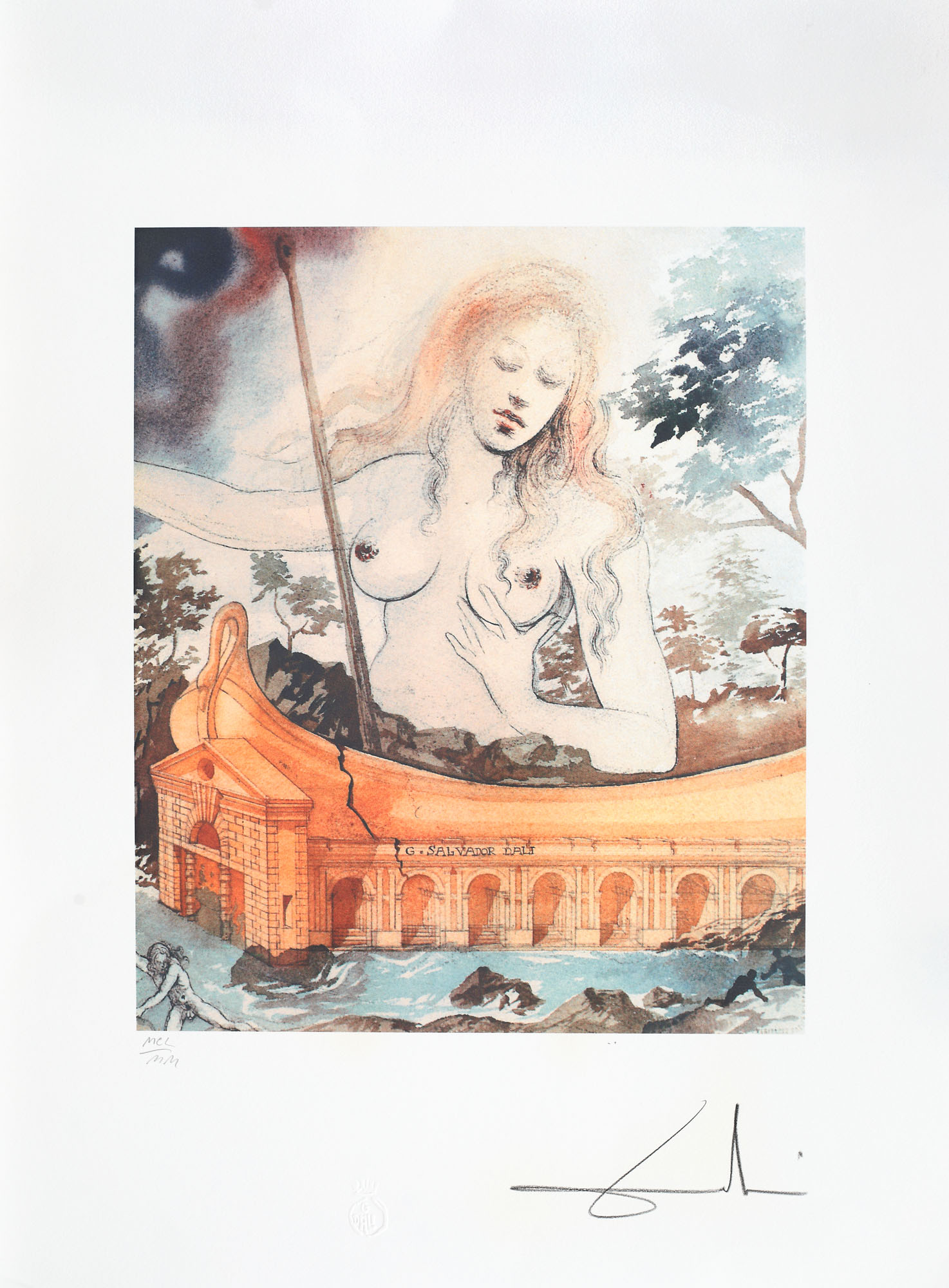 semnat dreapta jos, sub cadru, în creion, ”Dali”; numerotat stânga jos, sub cadru, în creion, ”MCL/MM”; central jos, ștampila editurii, ”G. Dali”