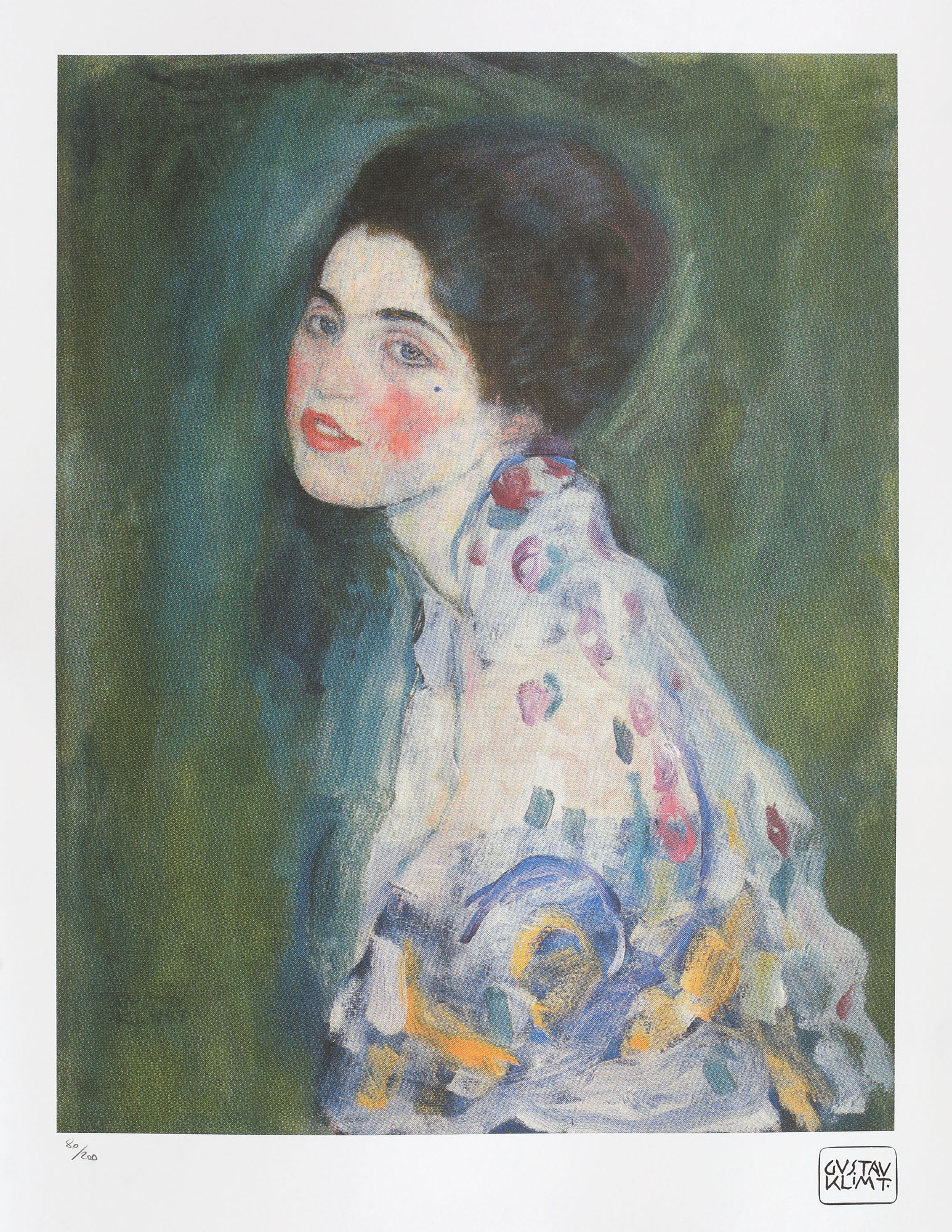 semnat dreapta jos, sub cadru, ”GUSTAV KLIMT”; numerotat stânga jos, sub cadru, în creion, ”80/200”