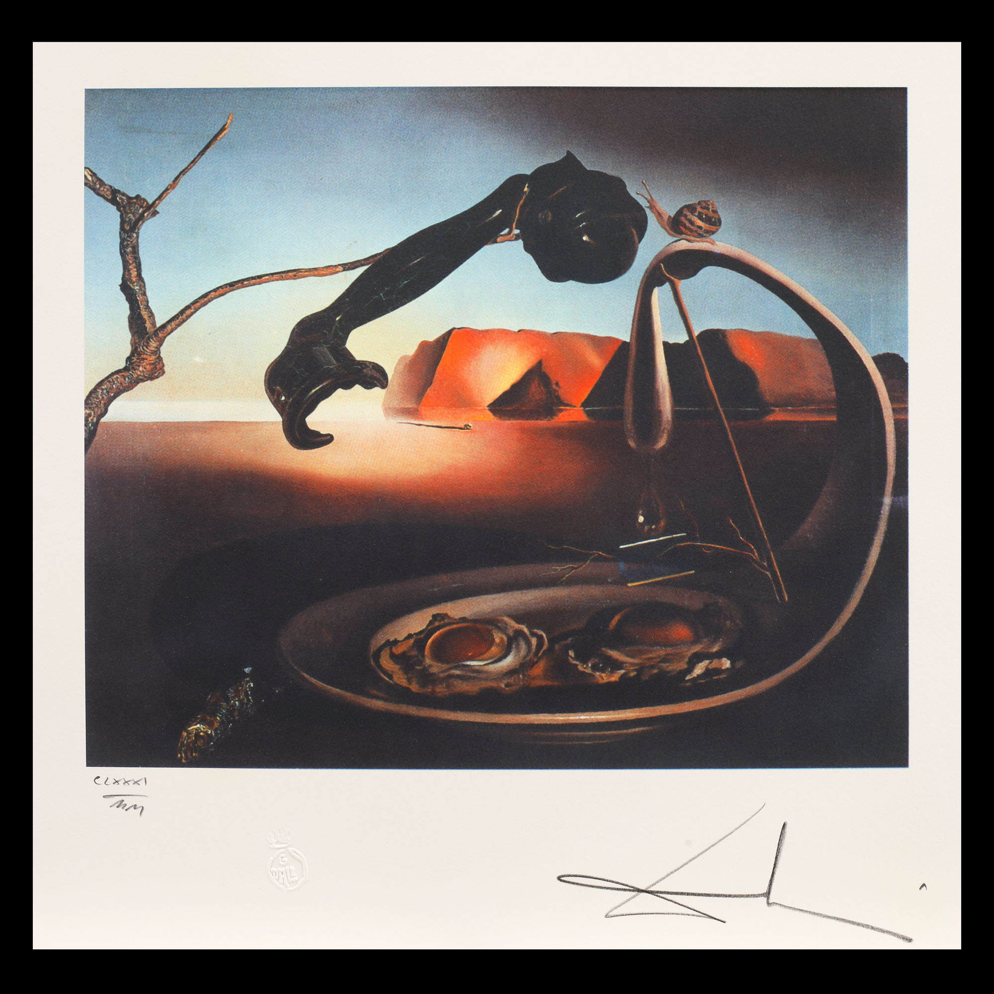 semnat dreapta jos, sub cadru, în cărbune, "Dali"; numerotat stânga jos, sub cadru, în creion, "CLXXXI/MM"; stânga jos, sub cadru, ştampila editurii, "G. Dali"