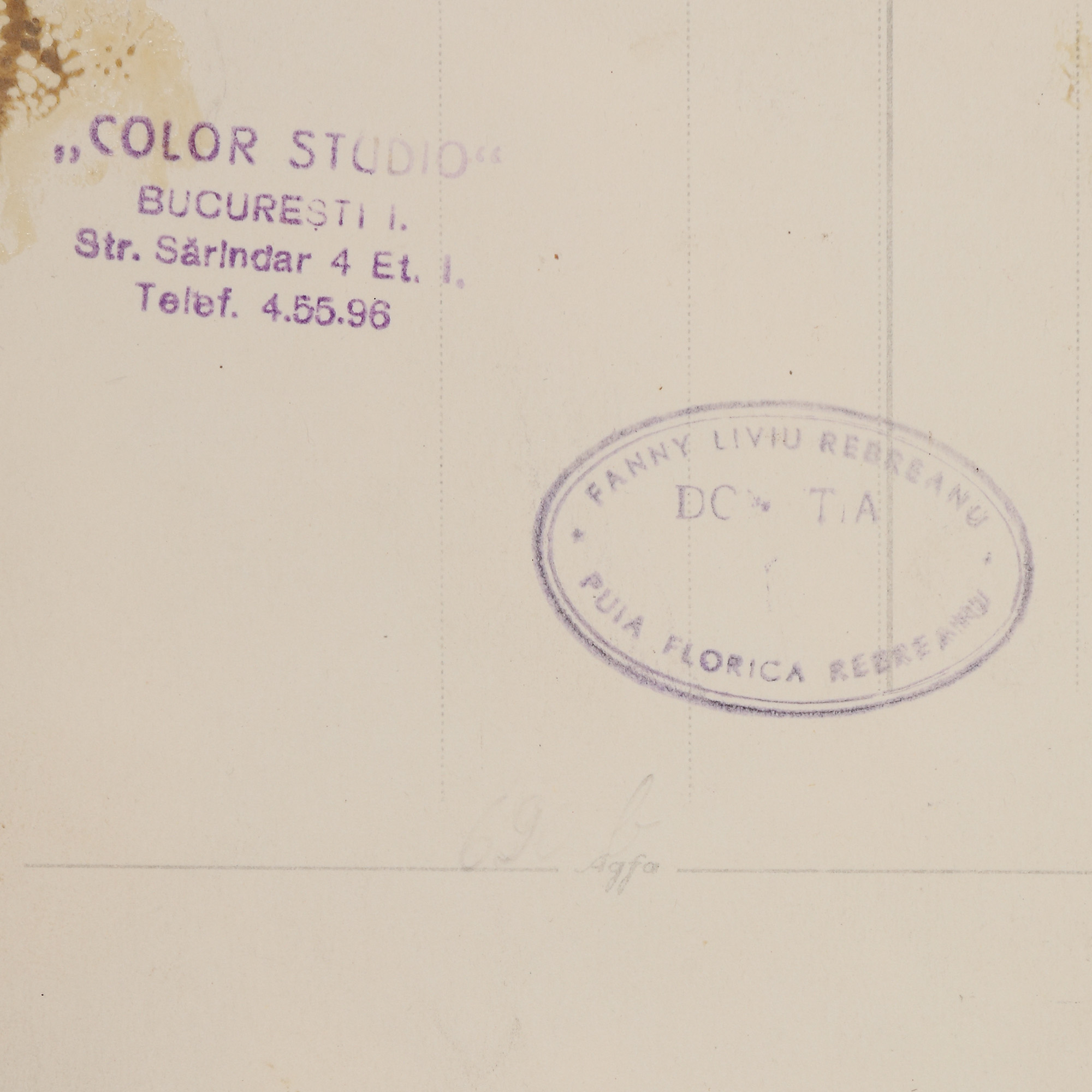 27. Fotografie ilustrându-l pe Liviu Rebreanu, atelier fotografic Color Studio, cu ex-librisul soției și fiicei scriitorului, București, cca. 1930, provine din colecția criticului literar Șerban Cioculescu