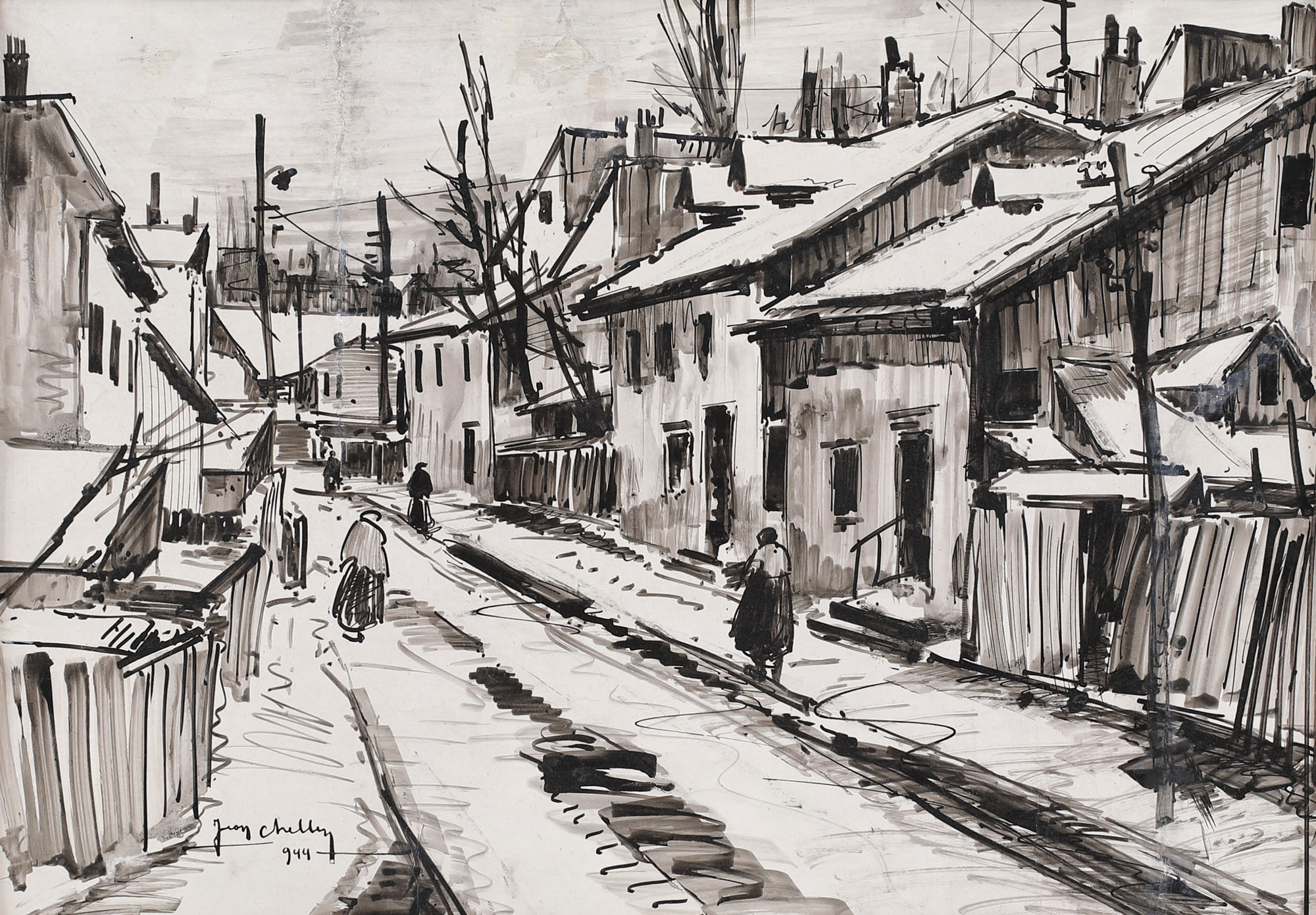 semnat și datat stânga jos, în peniță, "Jean Cheller, (1)944"