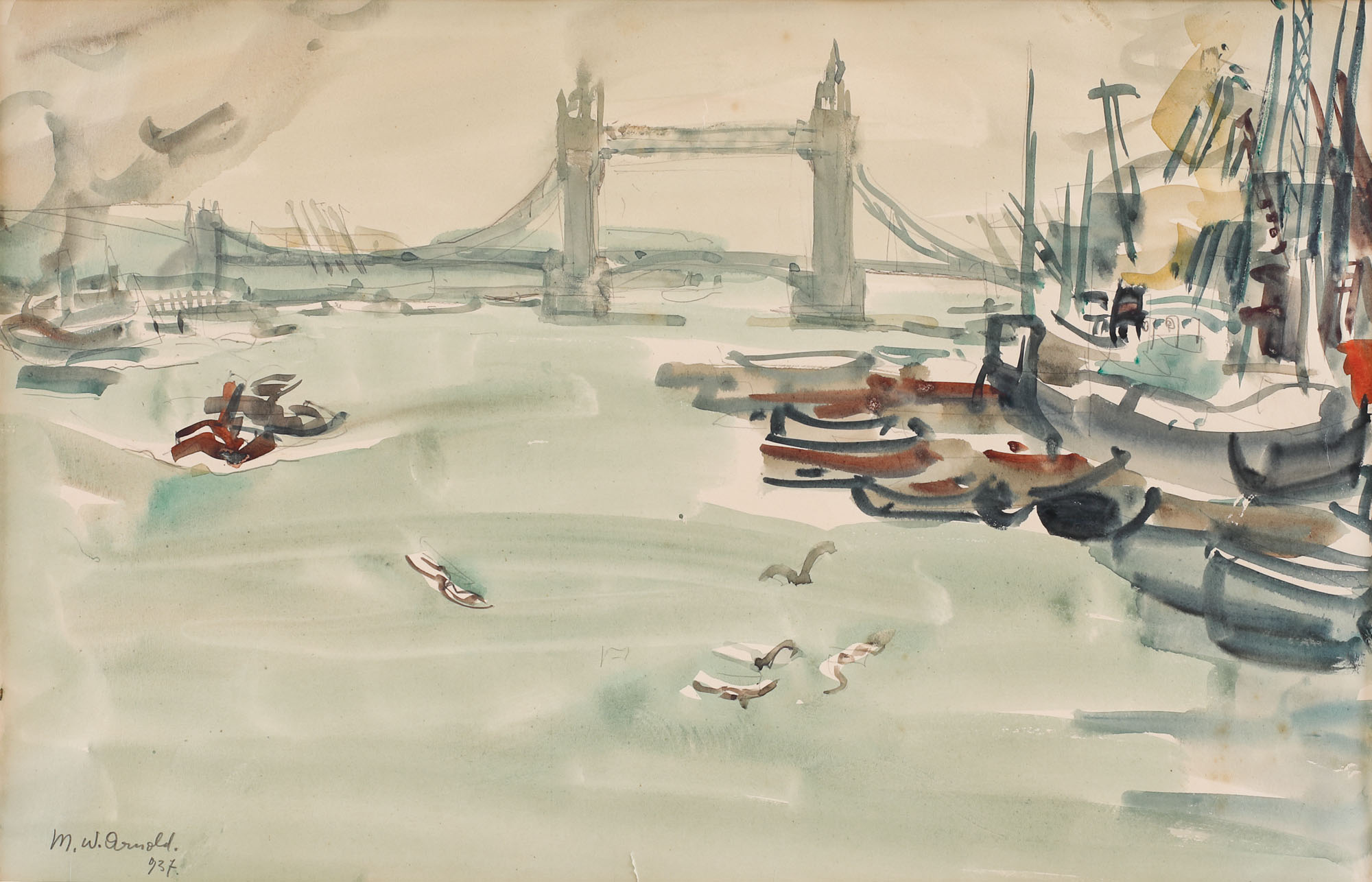 semnat și datat stânga jos. în creion, "m. w. arnold, (1)937"