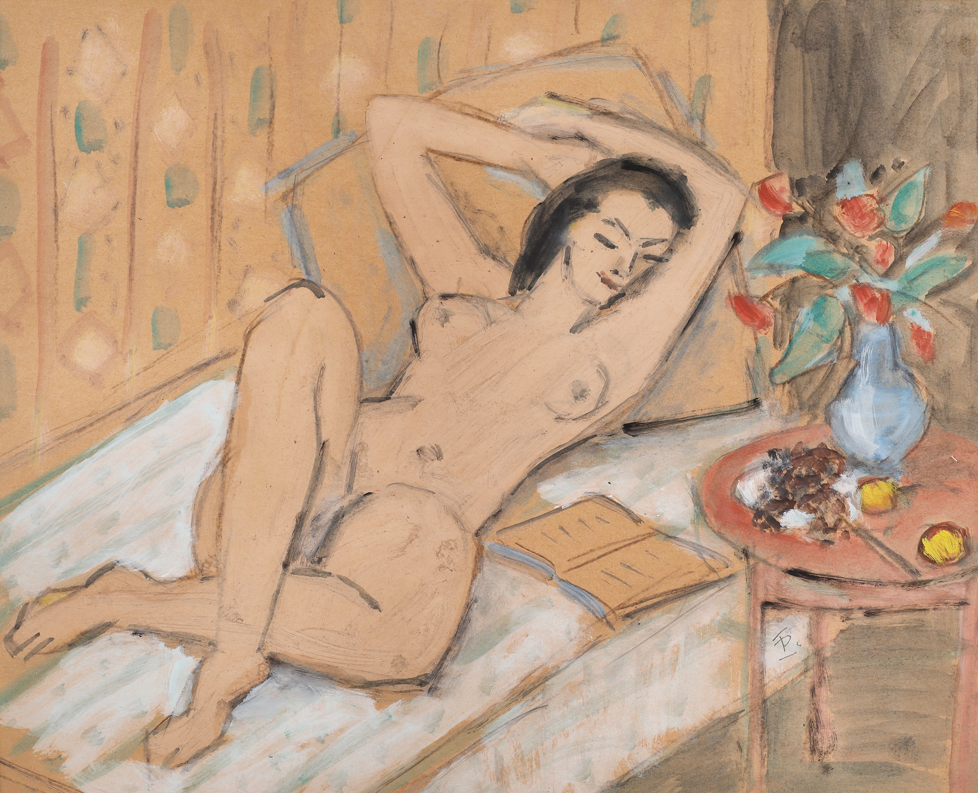 guașă, acuarelă și cărbune pe carton