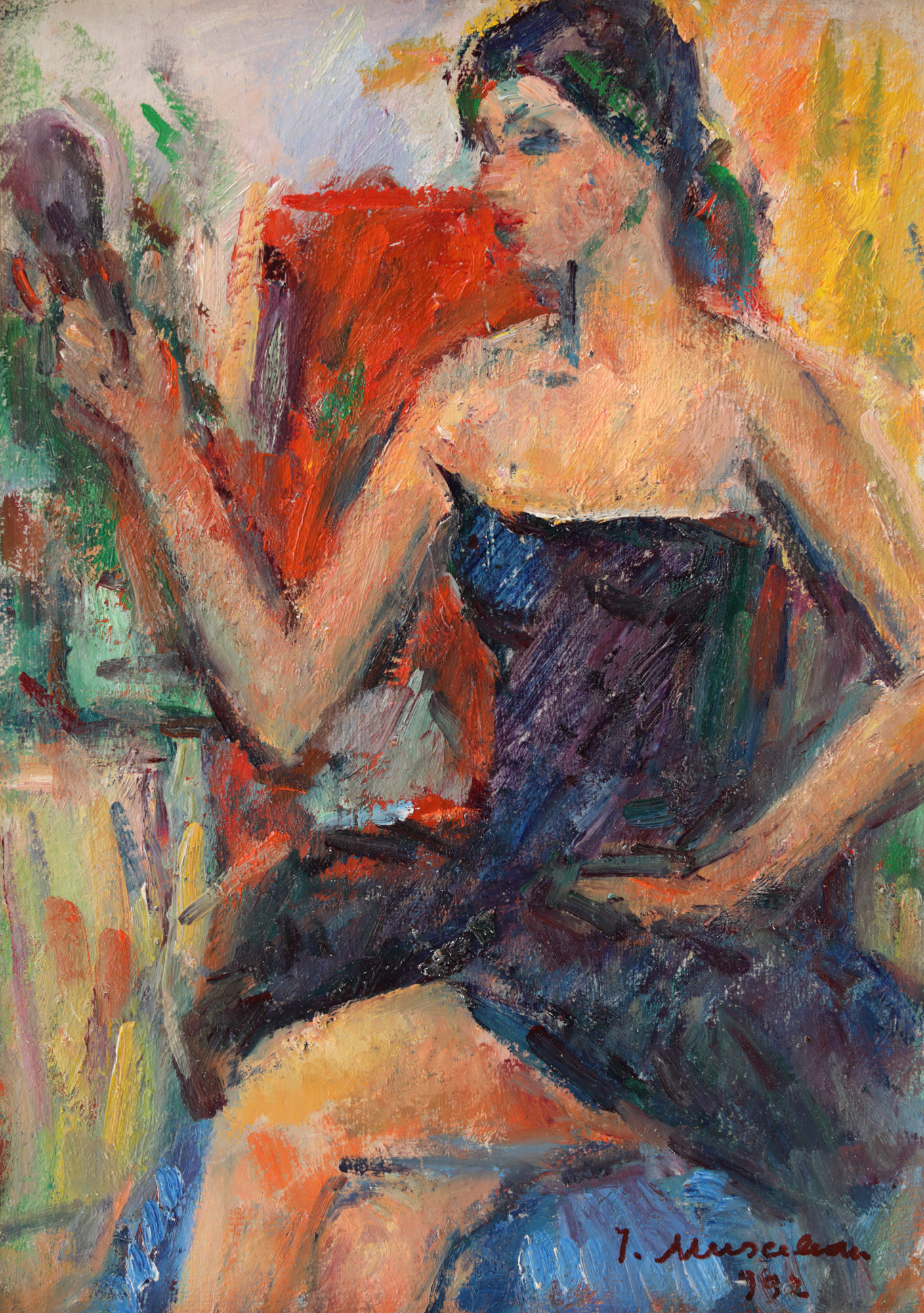 semnat și datat dreapta jos, cu roșu, ”I. Musceleanu, (1)992”