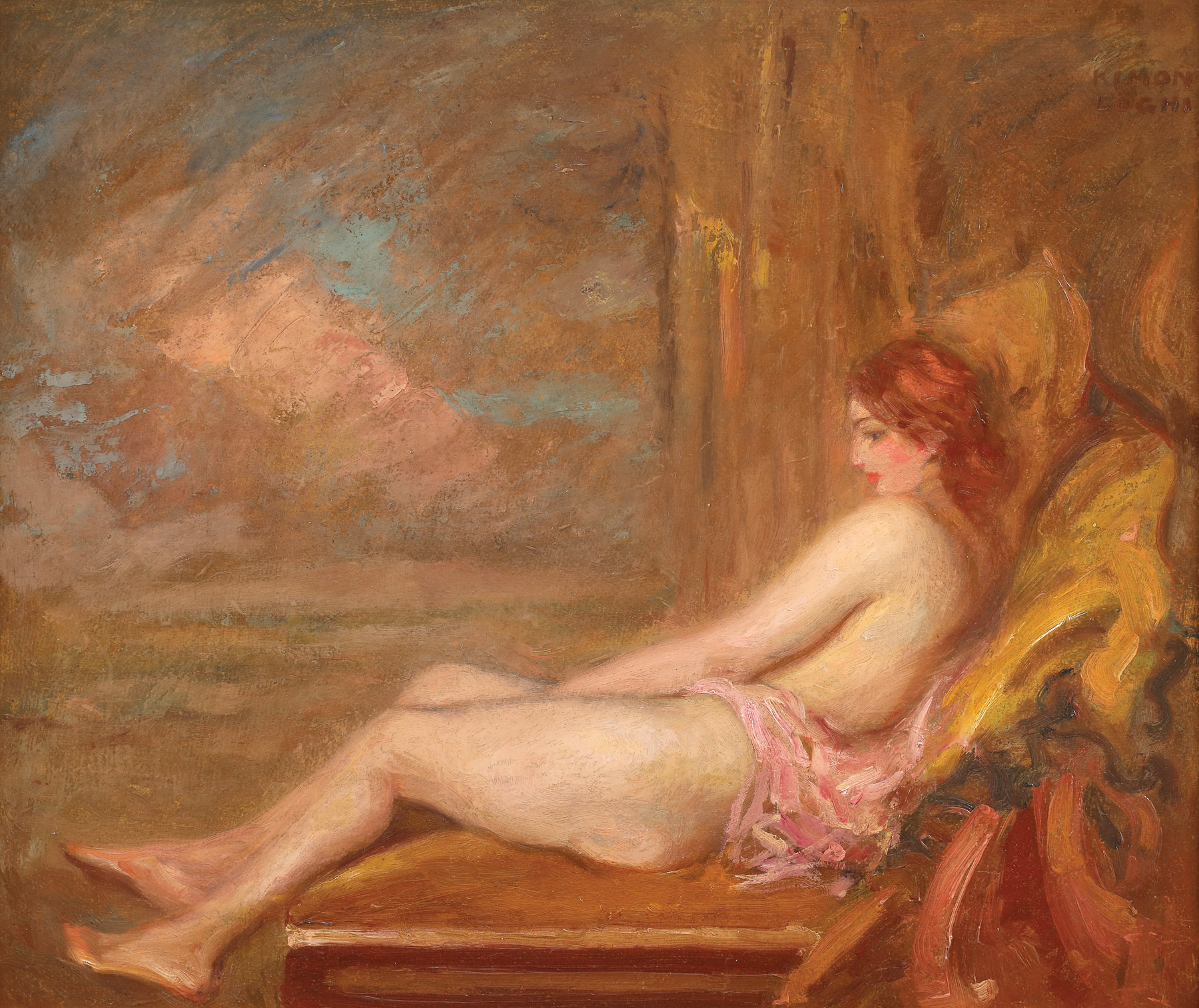 semnat dreapta sus, cu brun, "KIMON LOGHI"