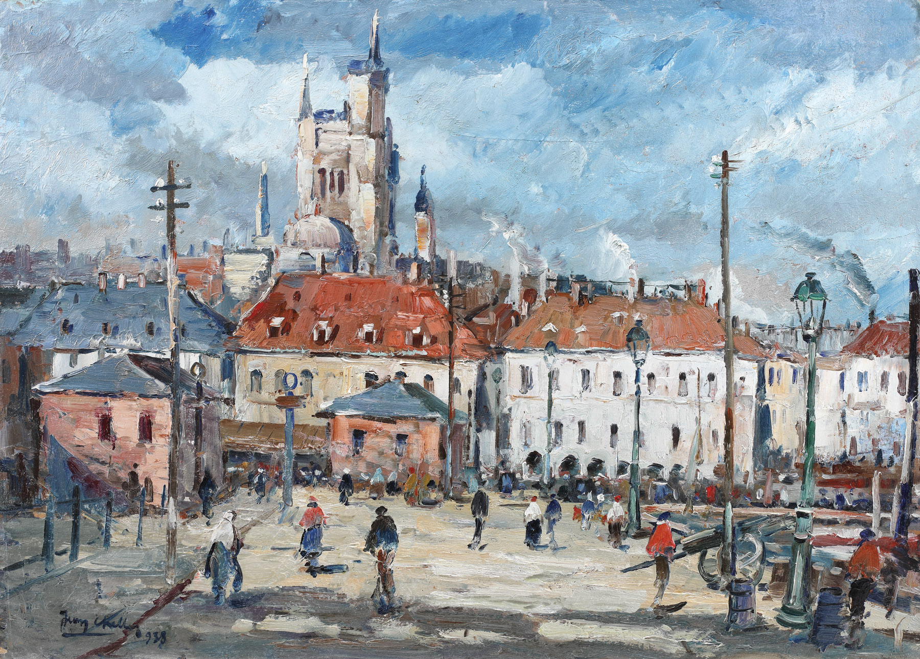 semnat și datat stânga jos, cu albastru, "Jean Cheller, (1)938"