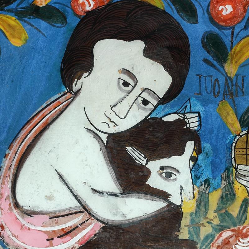 7. Icoană pe glajă, ”Iisus copil și Sfântul Ioan Botezătorul copil”, atelier transilvănean (Gherla), a doua jumătate a sec. XIX