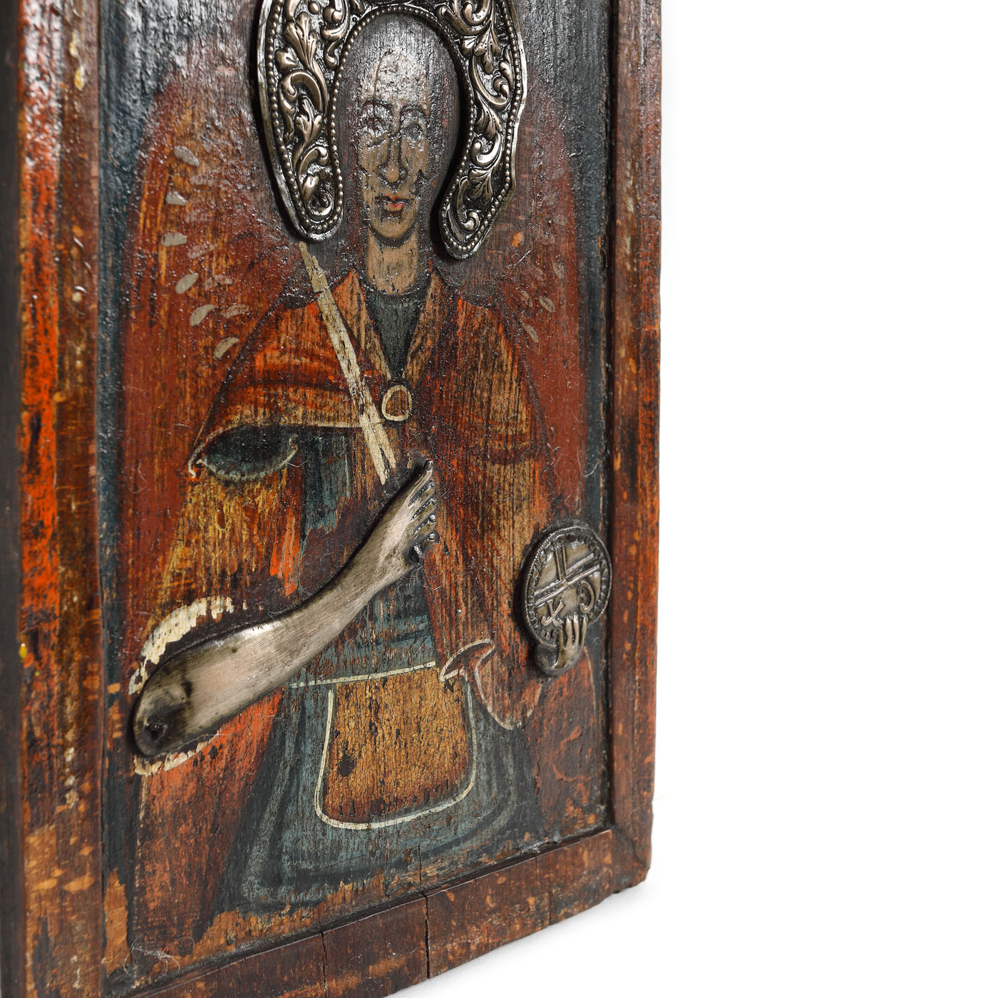 5. Icoană pe lemn, cu riză din argint, ”Arhanghelul Mihail”, școală transilvăneană, prima jumătate a sec. XIX
