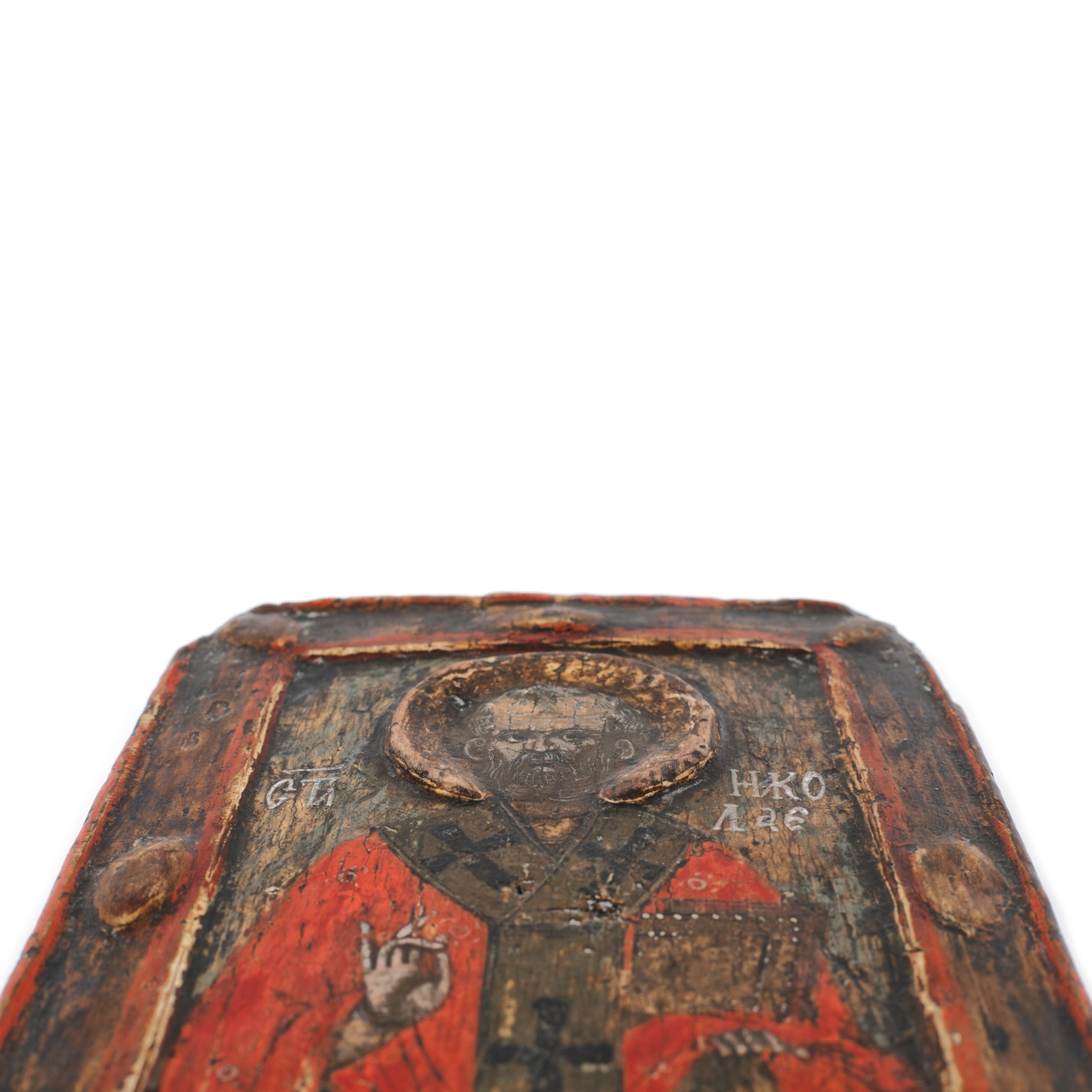 13. Icoană pe lemn, "Sfântul Nicolae", ramă sculptată, școală moldovenească, a doua jumătate a sec. XVII