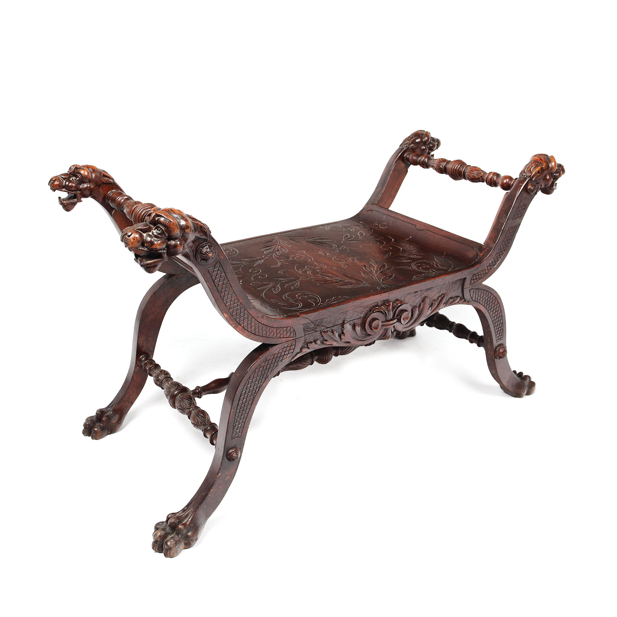 61. Banchetă Neo-Renascentistă, din lemn de nuc, prima jumătate a sec. XX