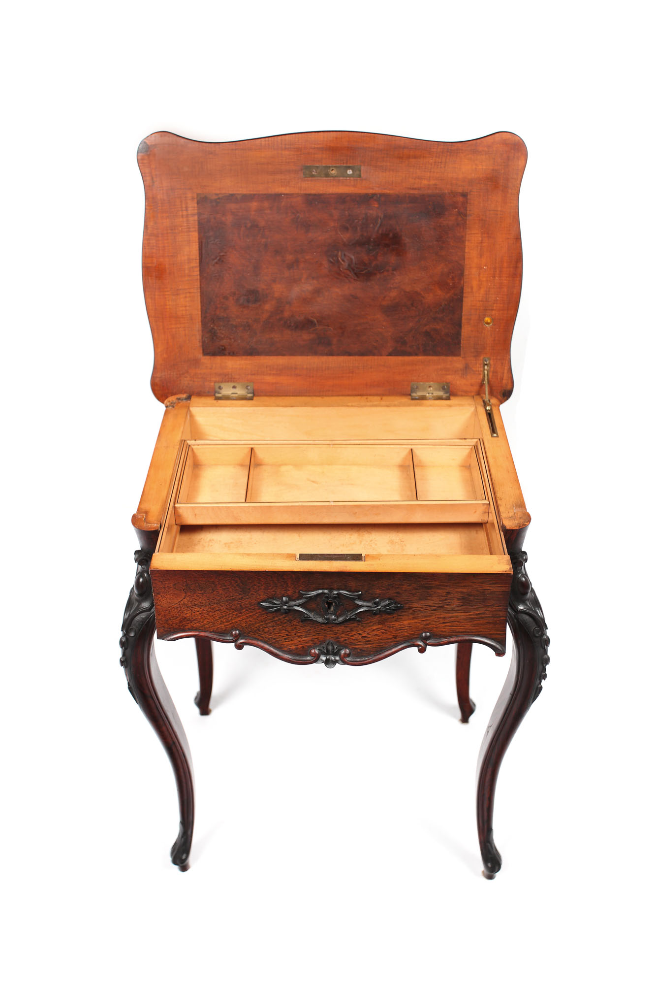 71. Măsuţă de lucru în stil Napoleon III, din lemn de acaju, cca. 1910