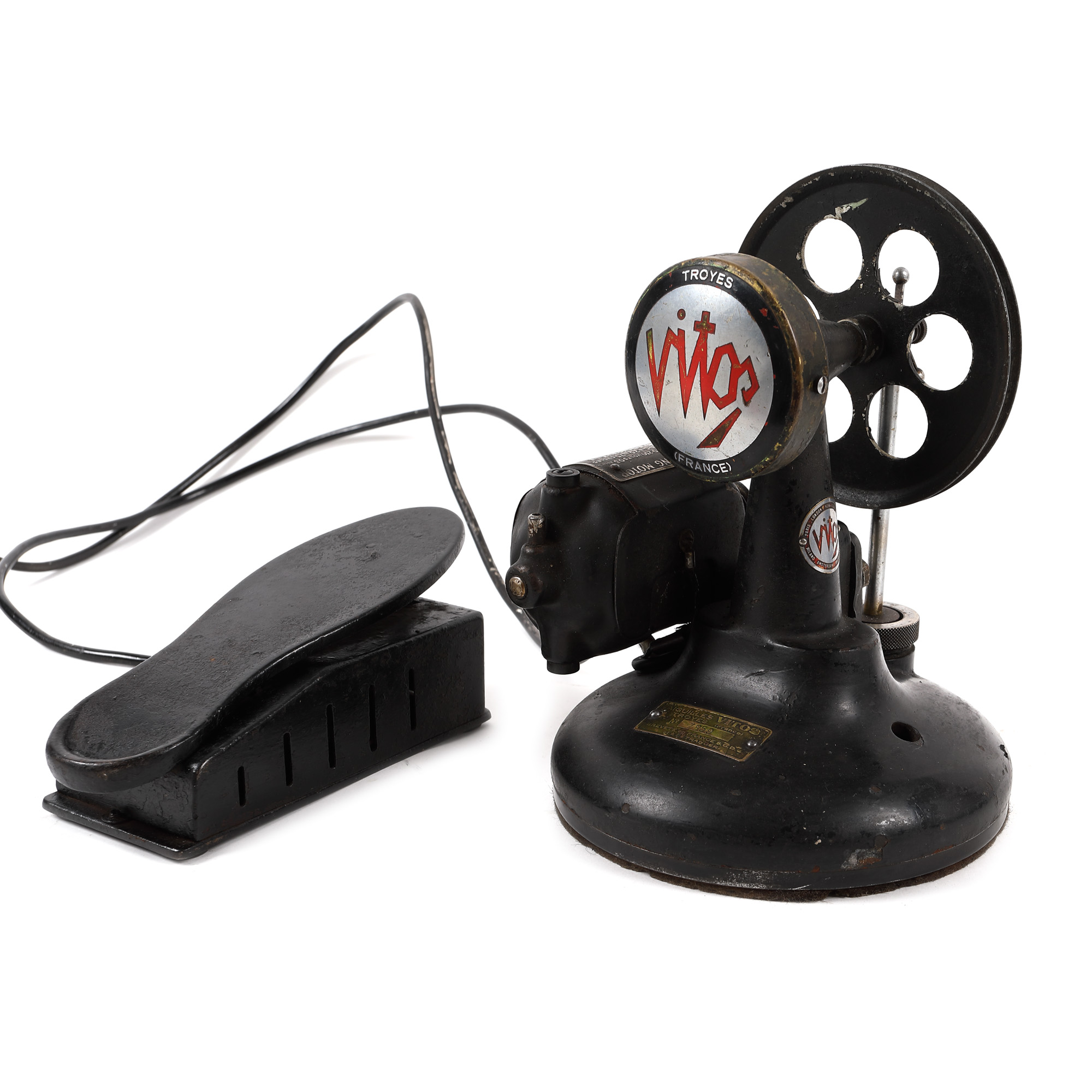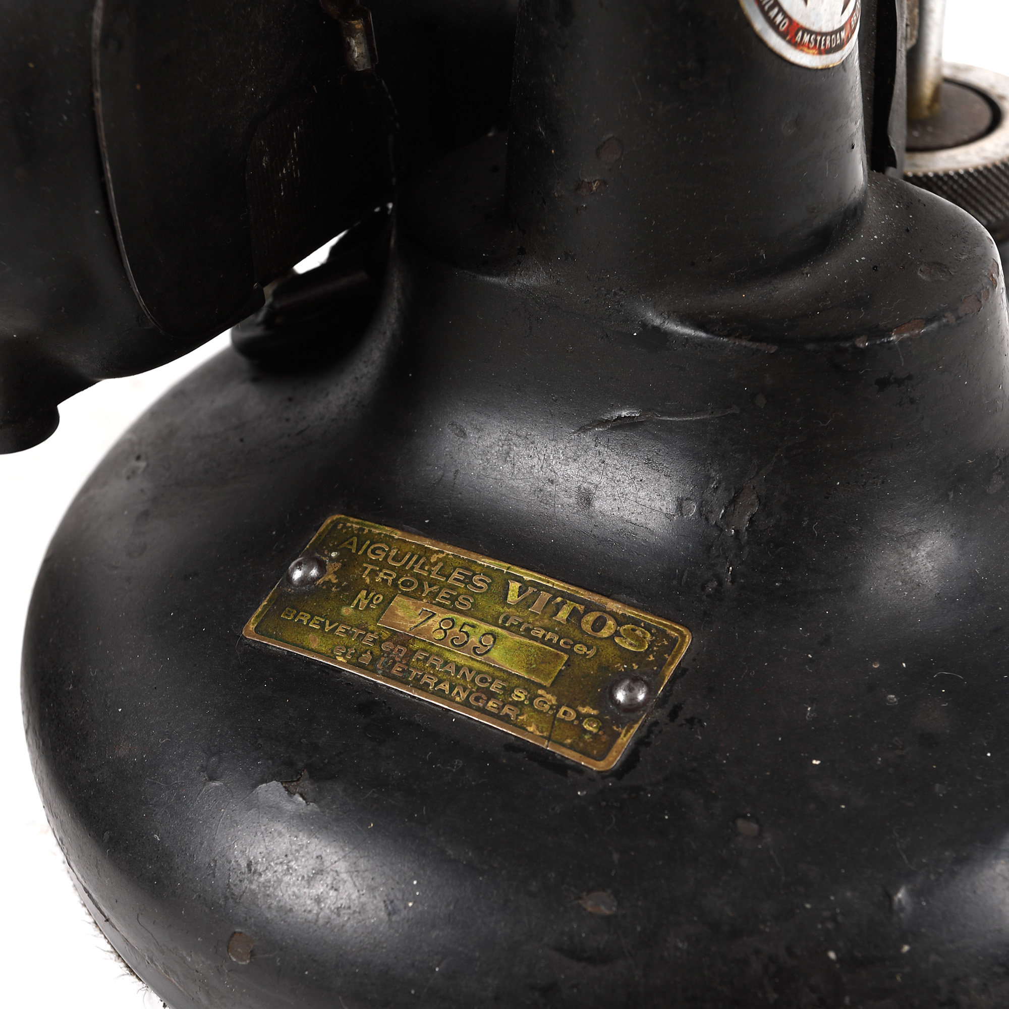 47. Lot format din mașină de tricotat și mașină de remaiat ciorapi, Gustav A. Nissen, motorul Singer, Aiguilles Vitos, prima jumătate a sec. XX