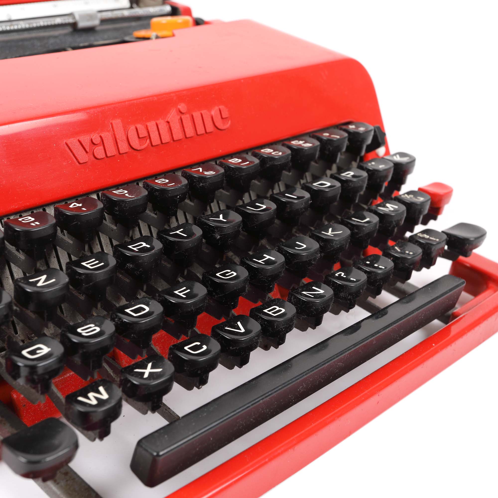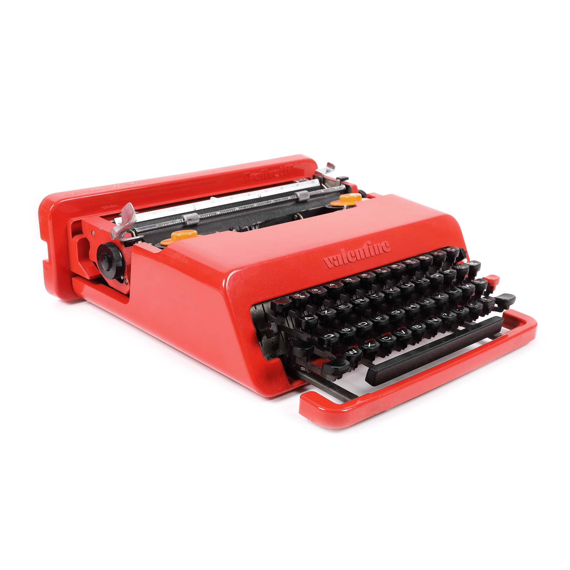 27. Mașină de scris Olivetti, model Valentine, design Ettore Sottsass, Italia, în cutia originală [cca. 1970-1976]