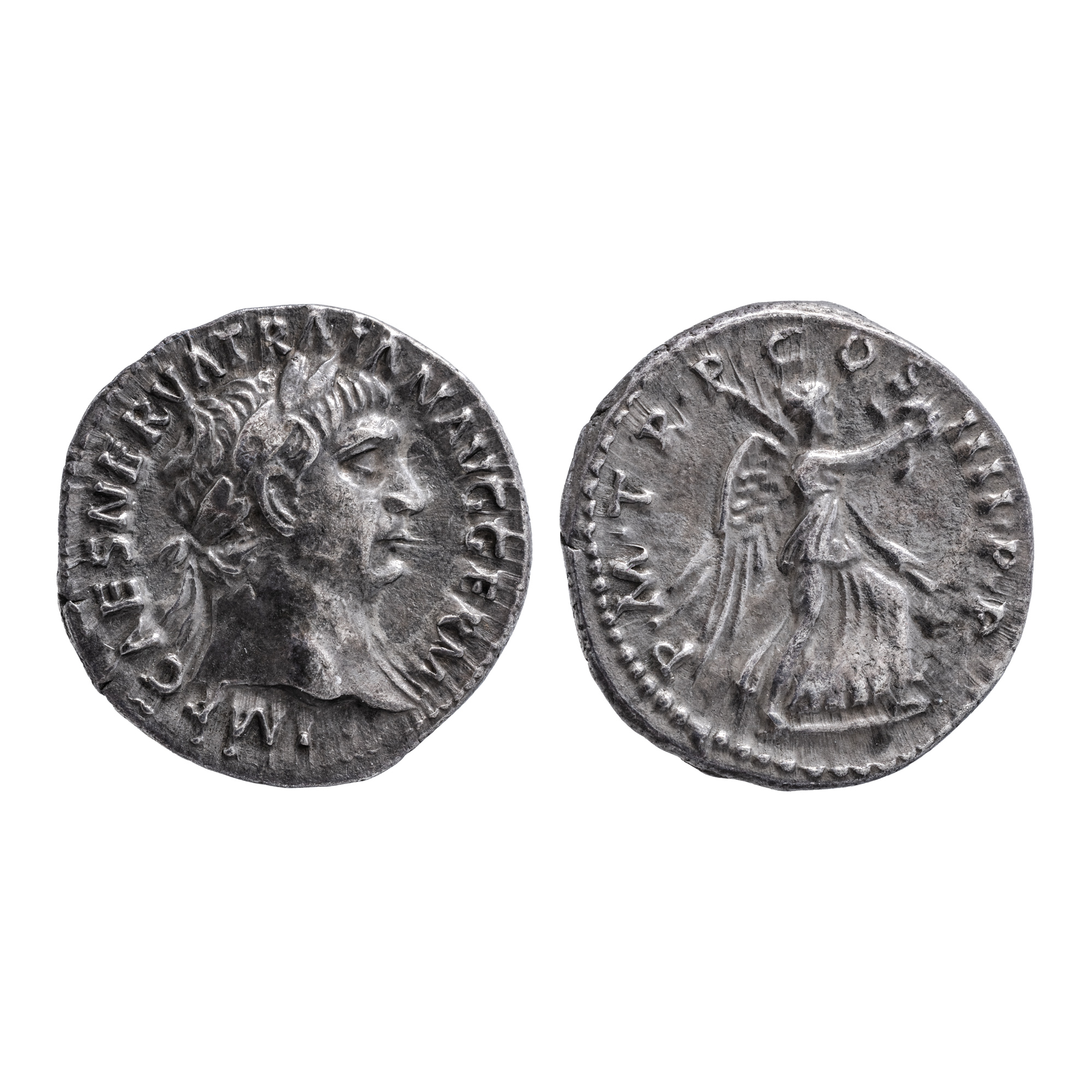 7C. Monedă Denarius, Traian, tip Victoria, 101-102 e.n., argint