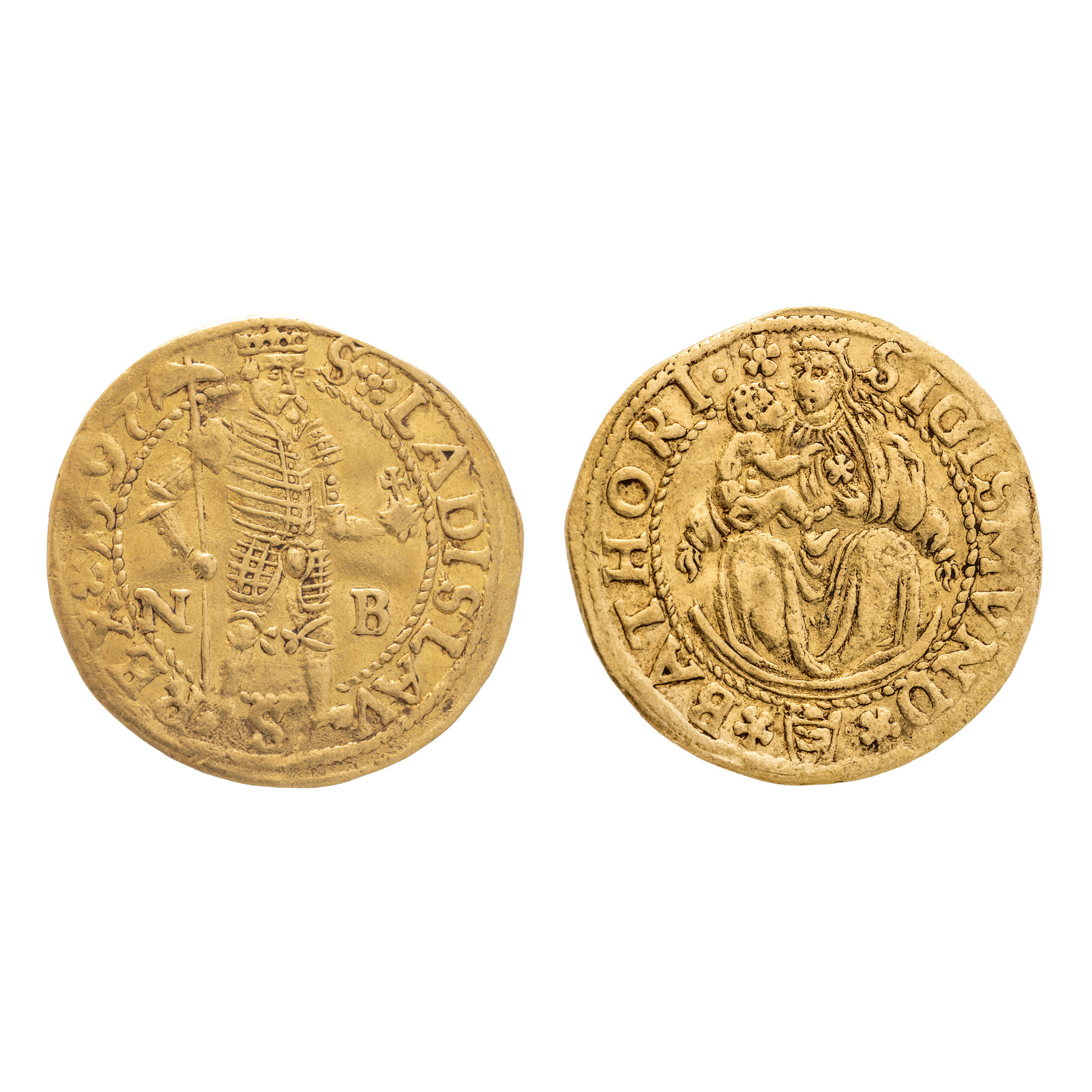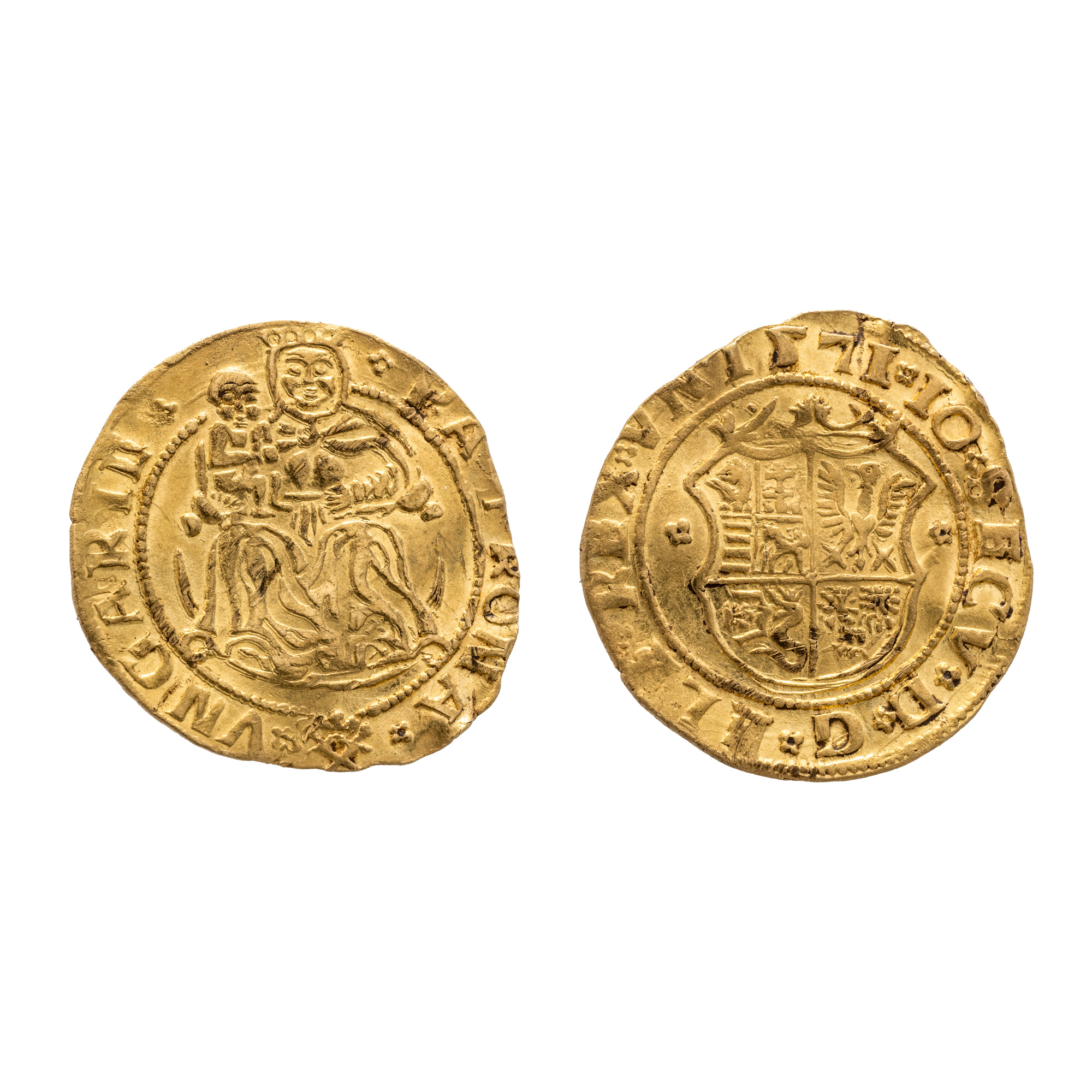 24C. Monedă Ducat, Matei Corvin, cca. 1482-1489, bătută la Baia Mare, aur, piesă rară, de colecție