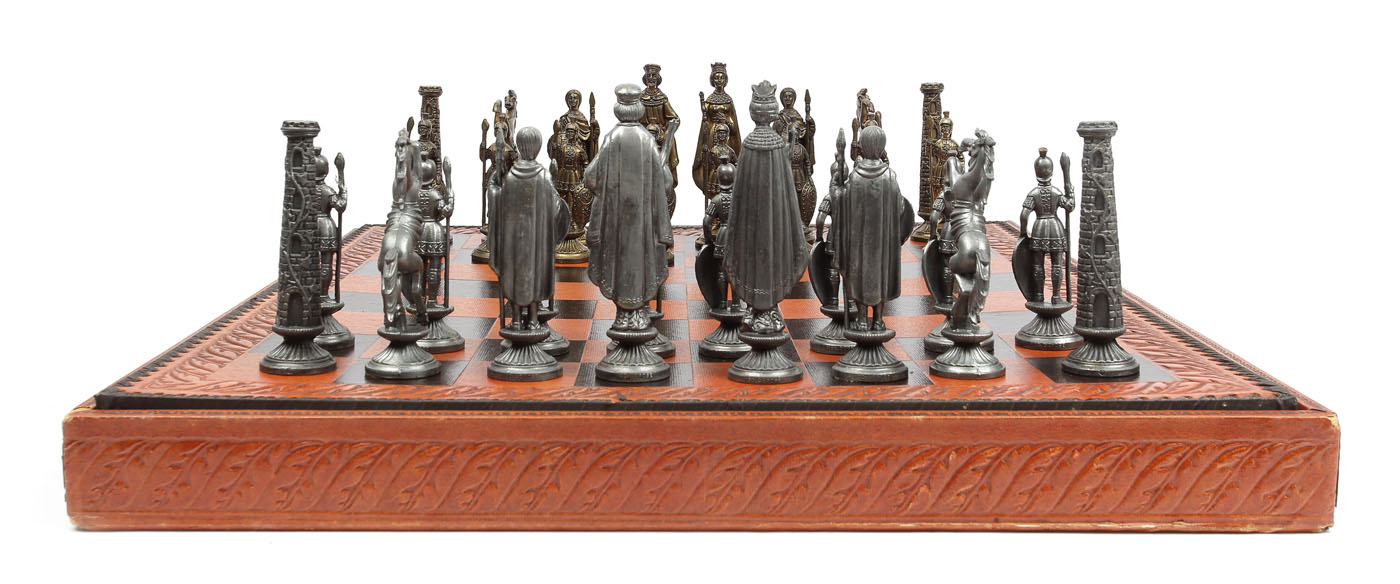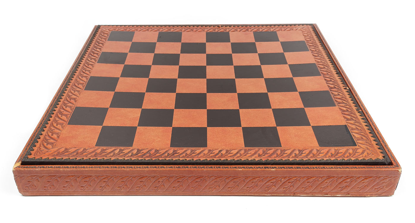 11. Impresionant joc de șah casetat, de dimensiuni atipice, cu tablă din piele, anii 1970