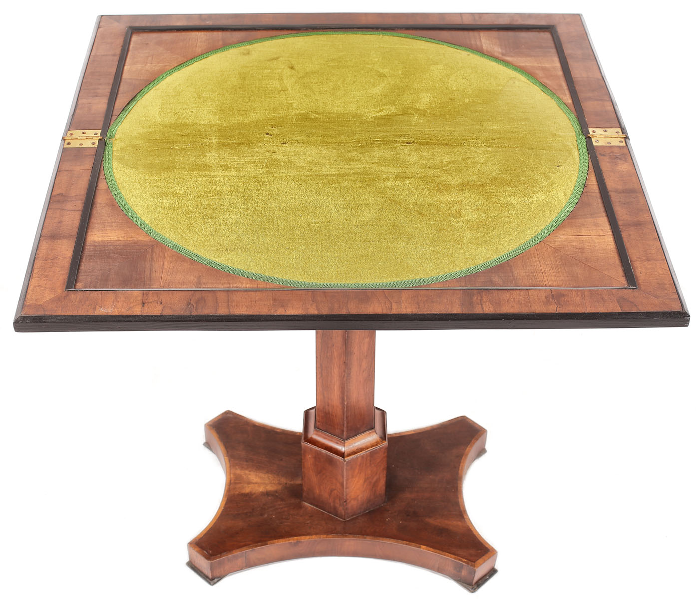30. Impresionantă garnitură formată dintr-o masă și patru scaune din lemn de nuc masiv, dedicată diverselor jocuri de societate [a doua jumătate a sec. XX]