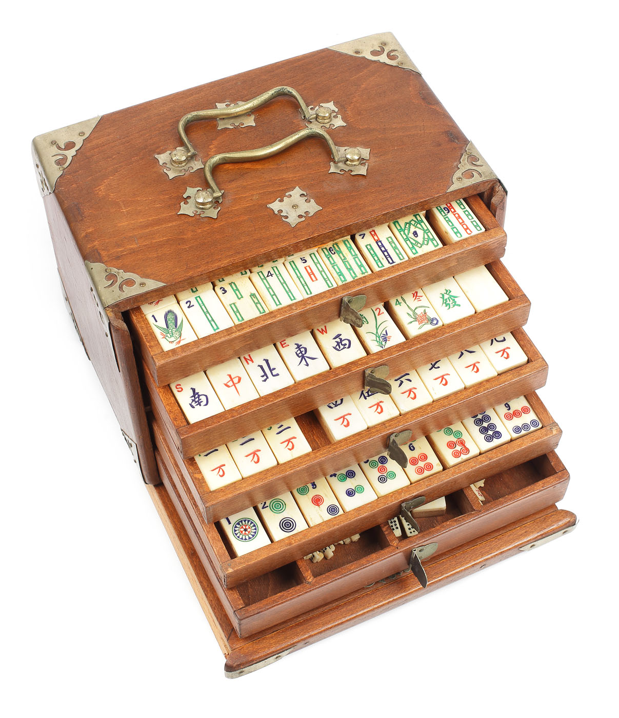 20. Joc de mahjong din lemn de fag, cu piese din os și bambus, începutul sec. XX