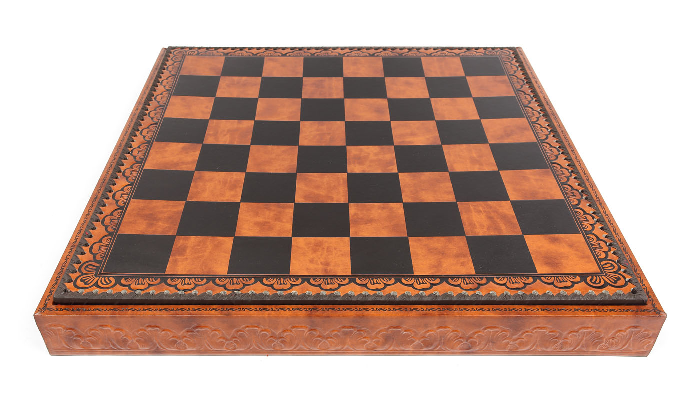 10. Joc de șah casetat, cu tabla de joc din piele, anii 1970