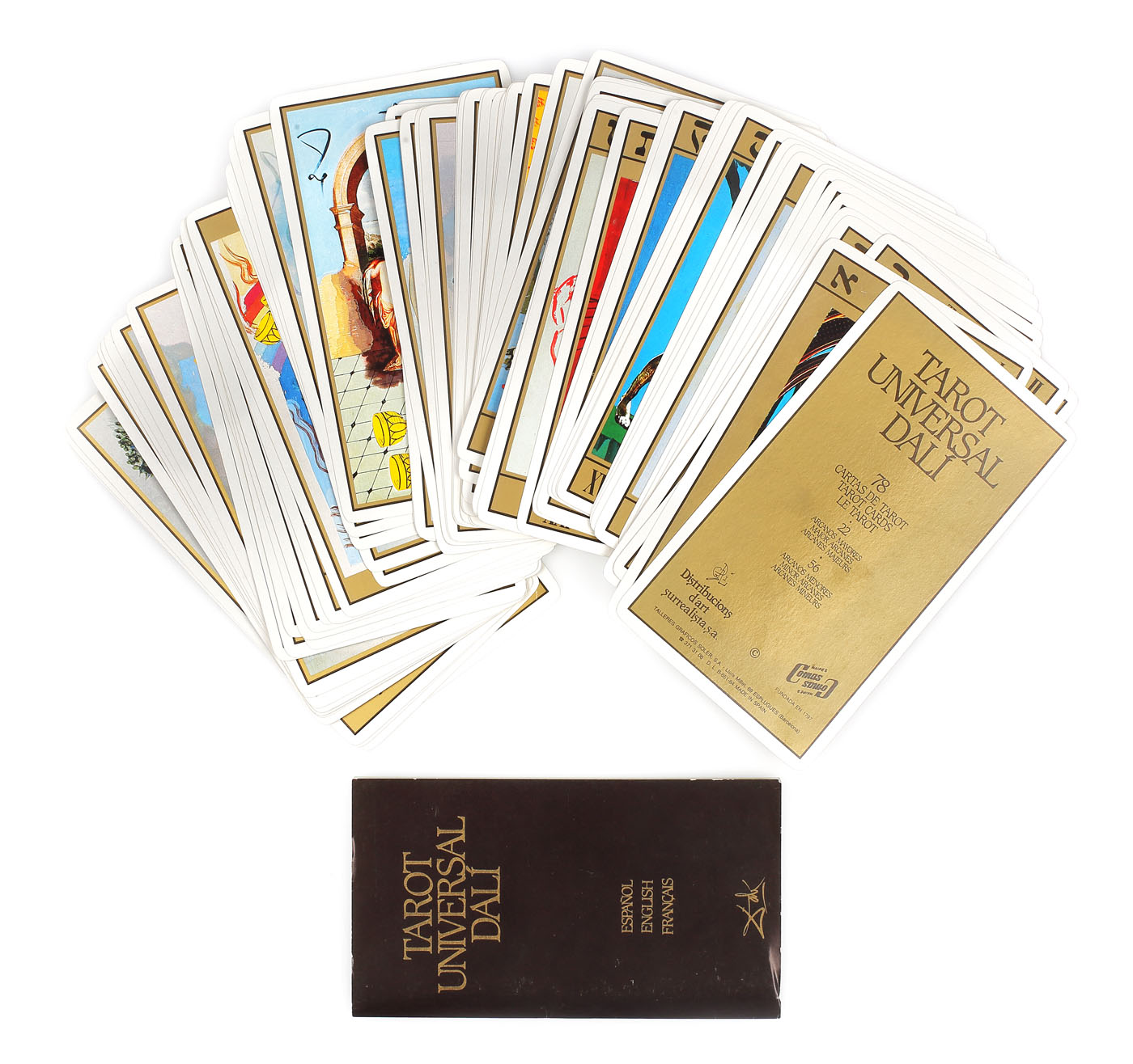 22. Set de cărți de tarot, ”Tarot Universal Dali”, conține 22 Arcane Majore și 56 Arcane Minore, editat la Barcelona, Spania, 1984