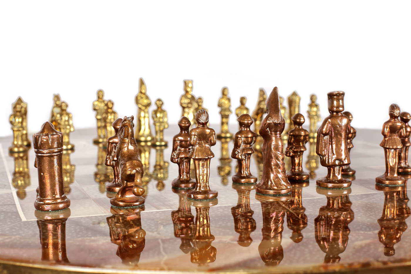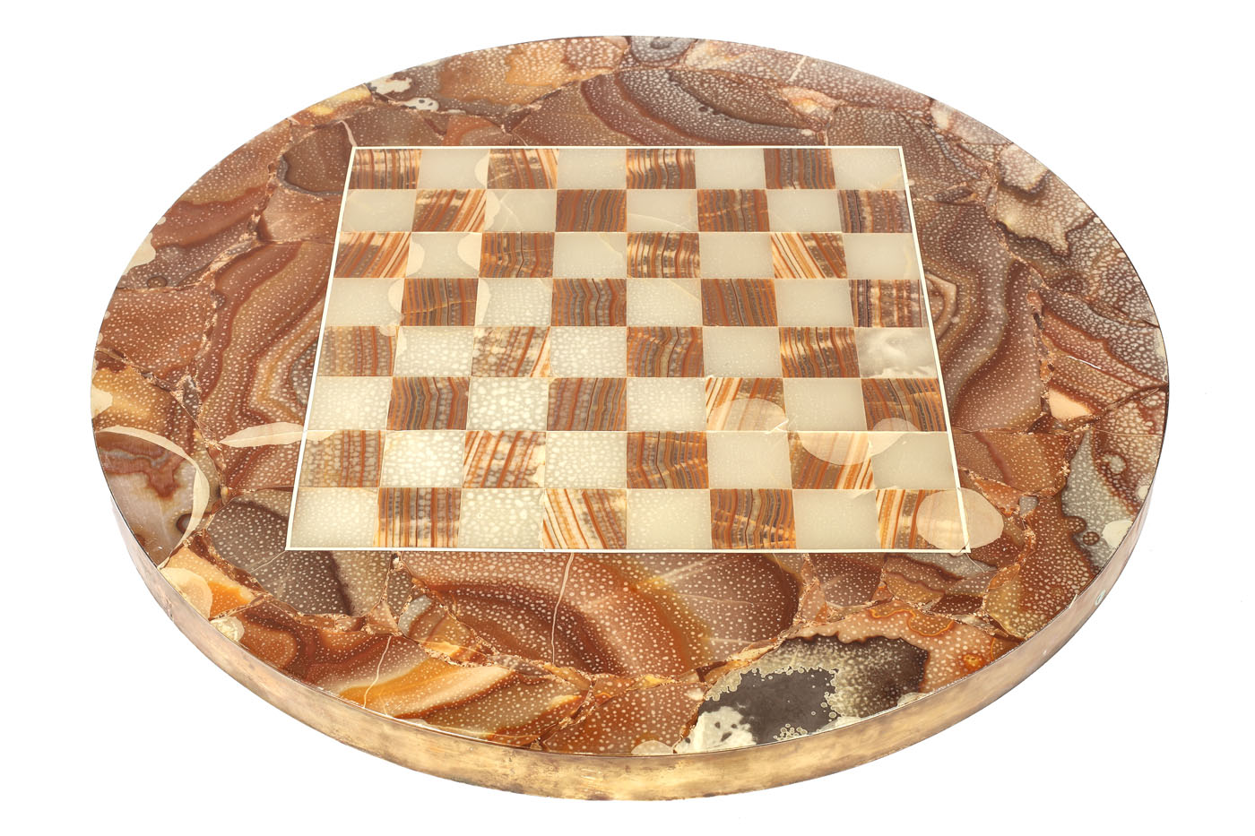 6. Superbă masă din onix și rășină, dedicată jocului de șah [a doua jumătate a sec. XX]