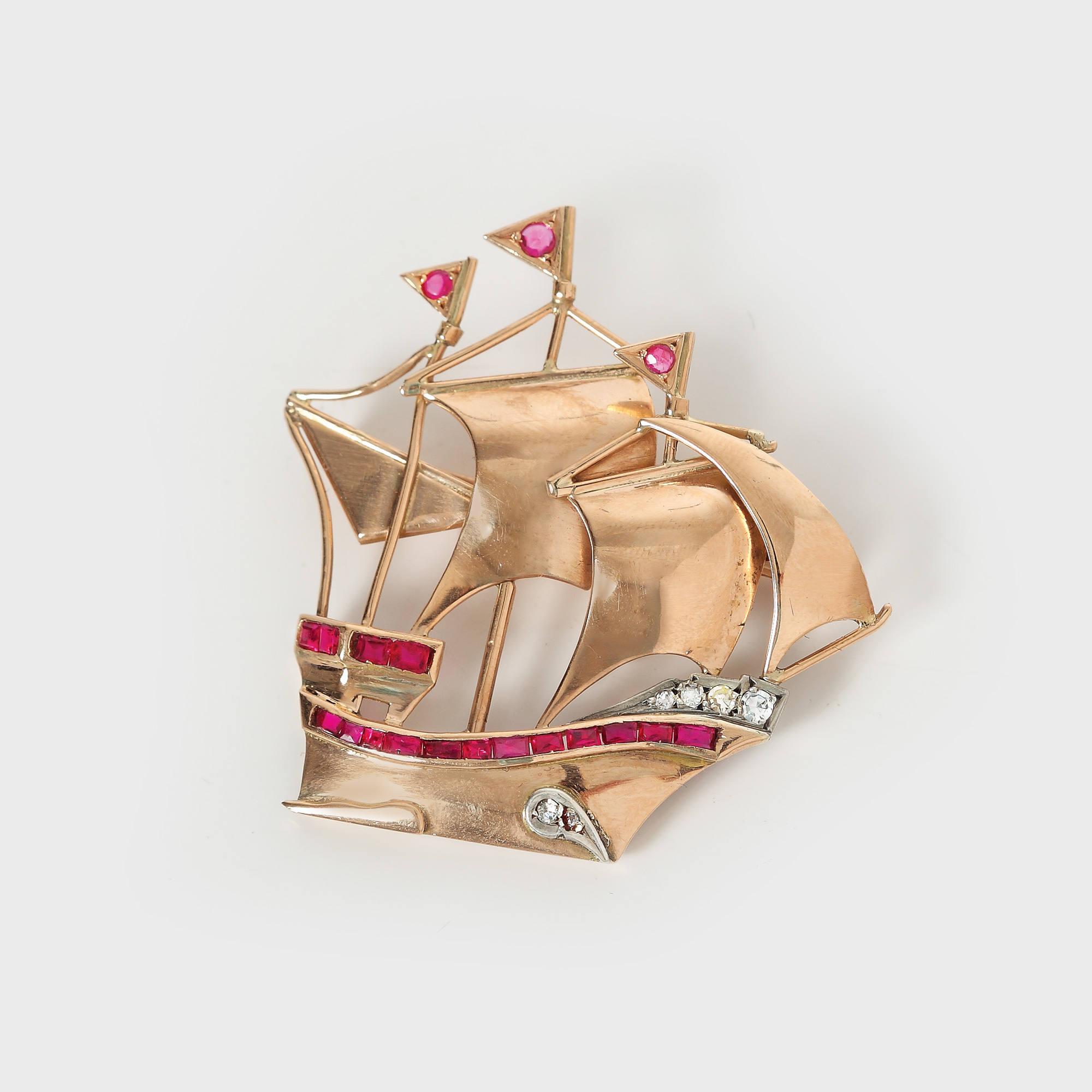 1. Broșă-corabie din aur, decorată cu rubine și diamante [Sec. XX]