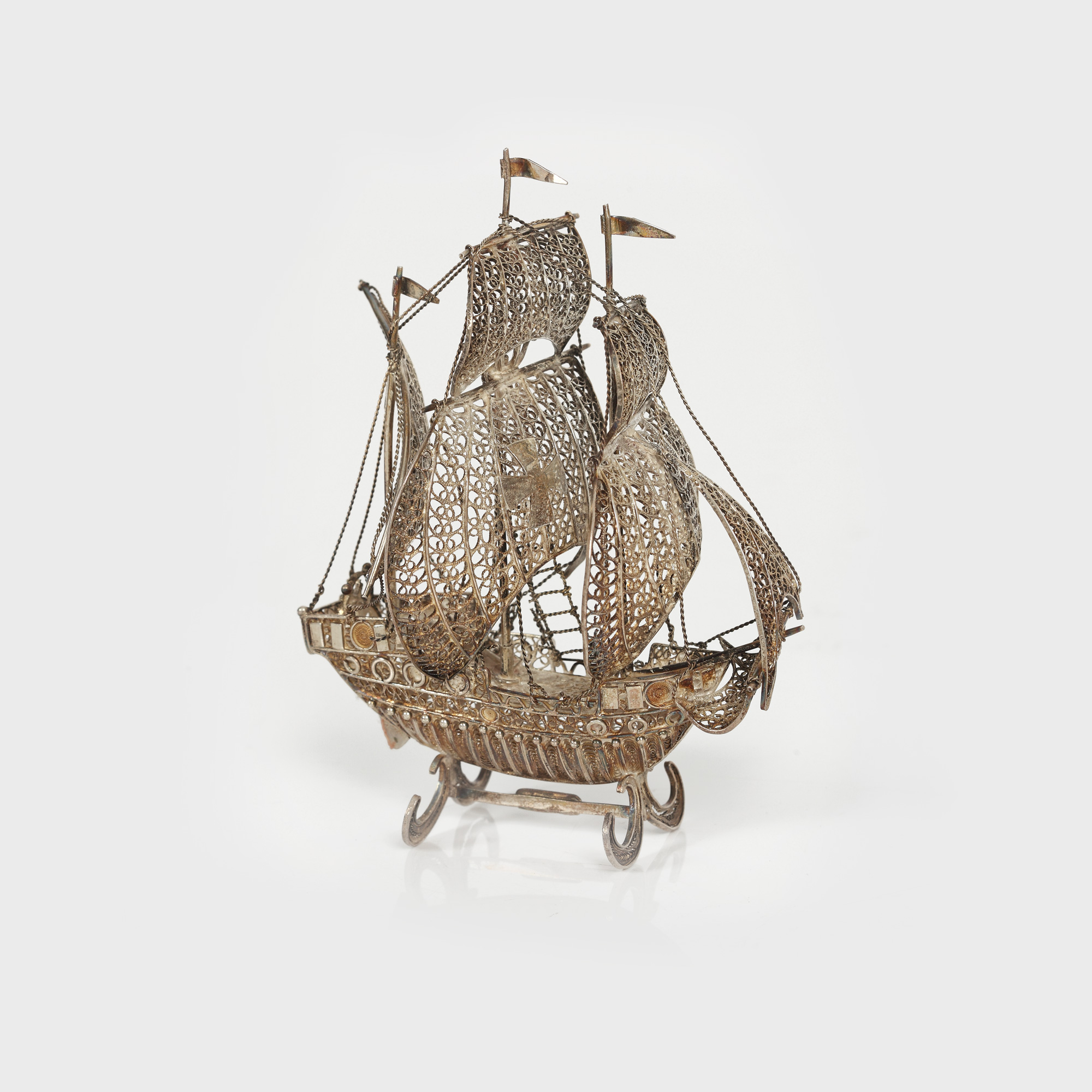 2. Corabie din argint filigranat, piesă decorativă de vitrină [Cca. 1968]