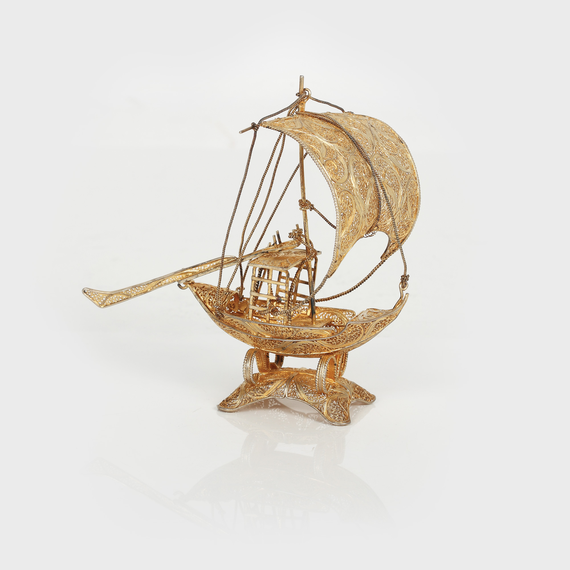 3. Corabie din argint aurit și filigranat, piesă decorativă de vitrină [A doua jumătate a sec. XX]