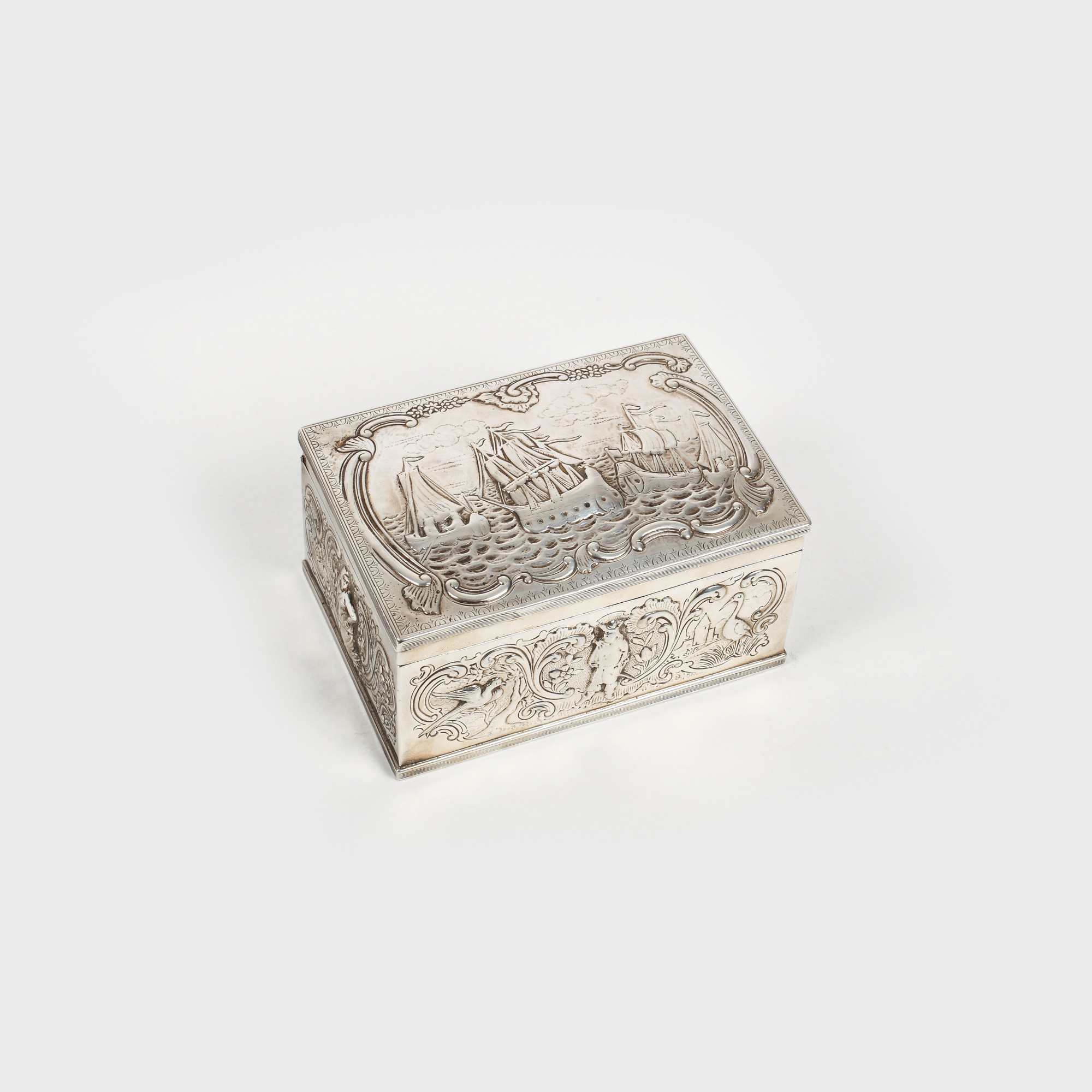 5. Casetă din argint, decorată cu peisaj marin, a doua jumătate a sec. XIX