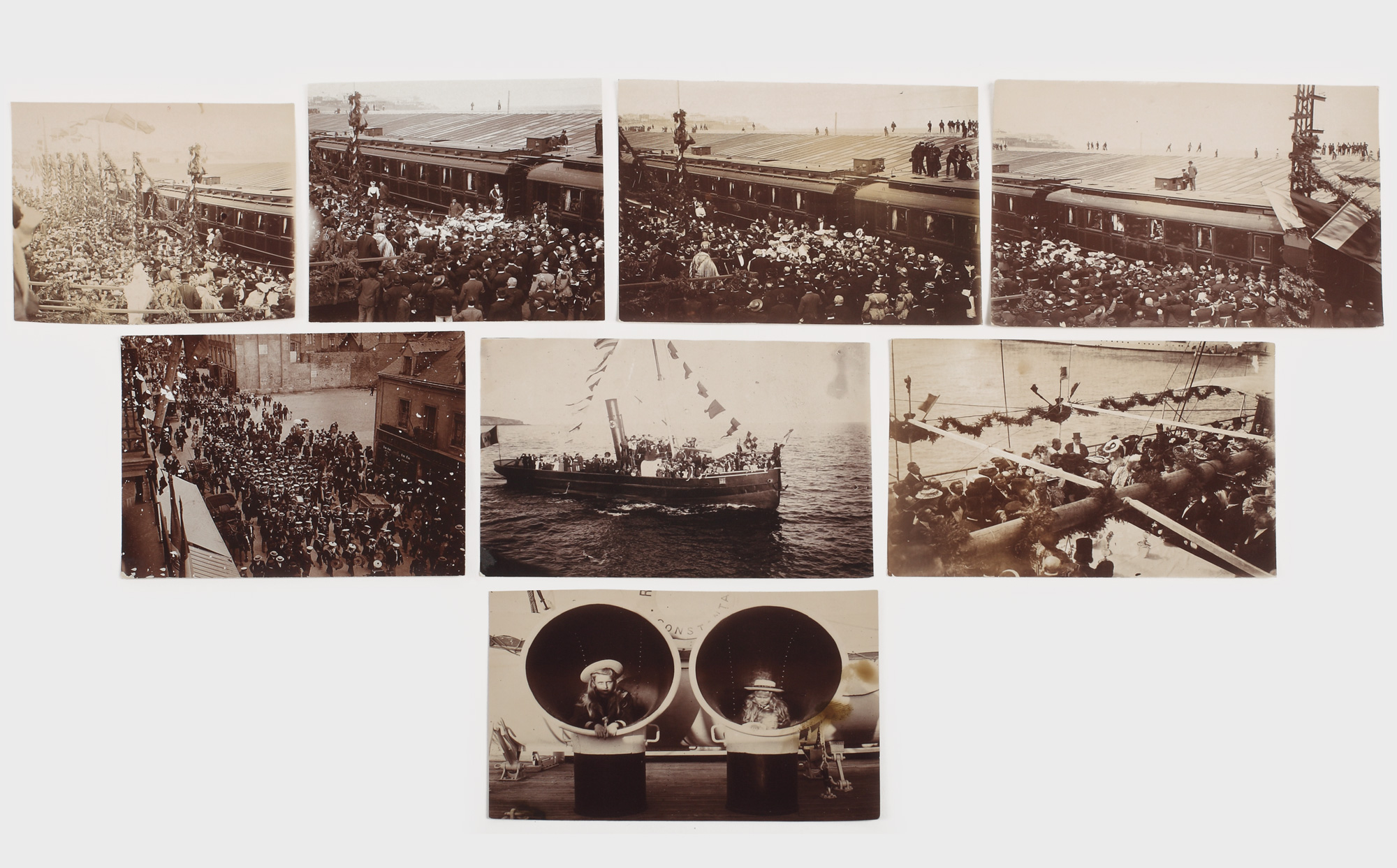 22. Botezul vasului "Regele Carol I", în prezența familiei regale, lot de 8 fotografii, Constanța, cca. 1898