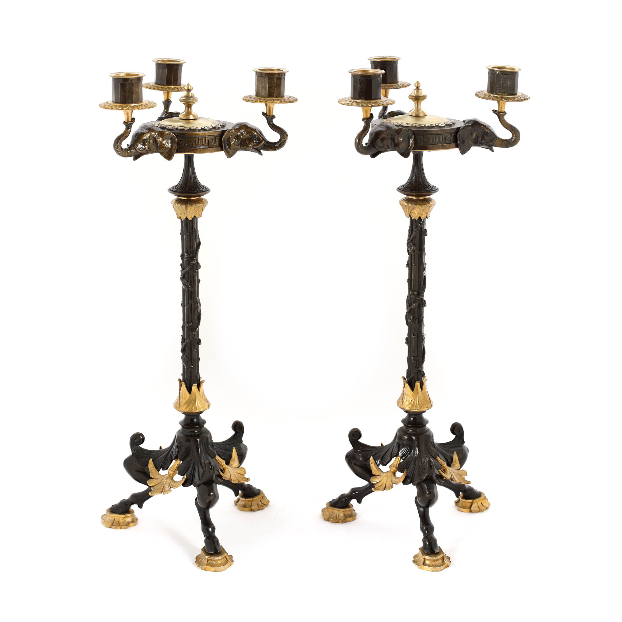 4. Deosebită pereche de sfeșnice Napoleon III, din bronz aurit, autor Henri Picard, cca. 1860