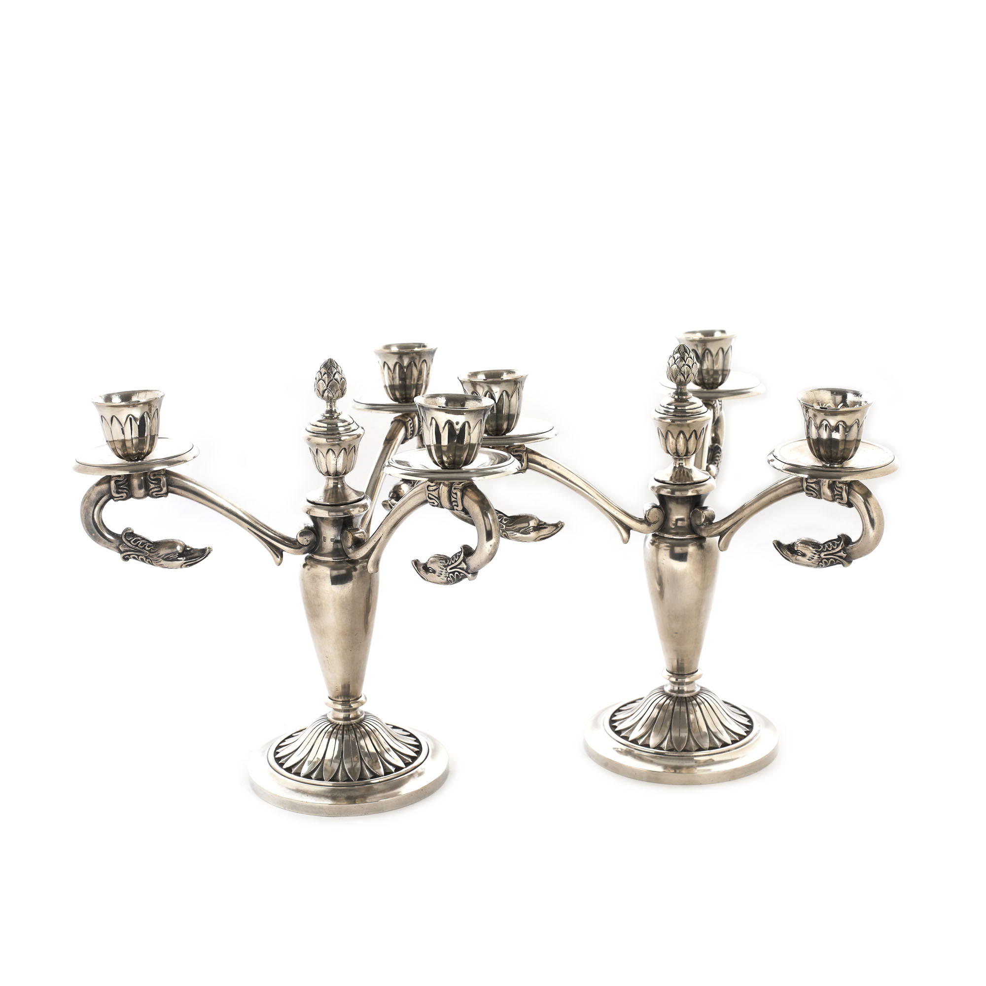 25. Splendidă pereche de sfeșnice în manieră Louis Süe și André Mare, din bronz argintat, cca. 1925